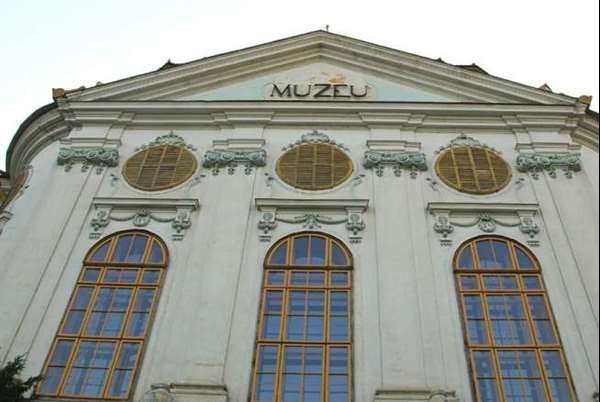 Pe fațada principală se detașează rezalitul central, decorat simetric cu pilaștri terminați în capiteluri ionice, ghirlande și falduri, toate acestea punând în valoare, cu o distincție unică, porțile de acces spre interior și ferestrele de la etajul I, rezalit terminat în partea superioară într-un fronton triunghiular.