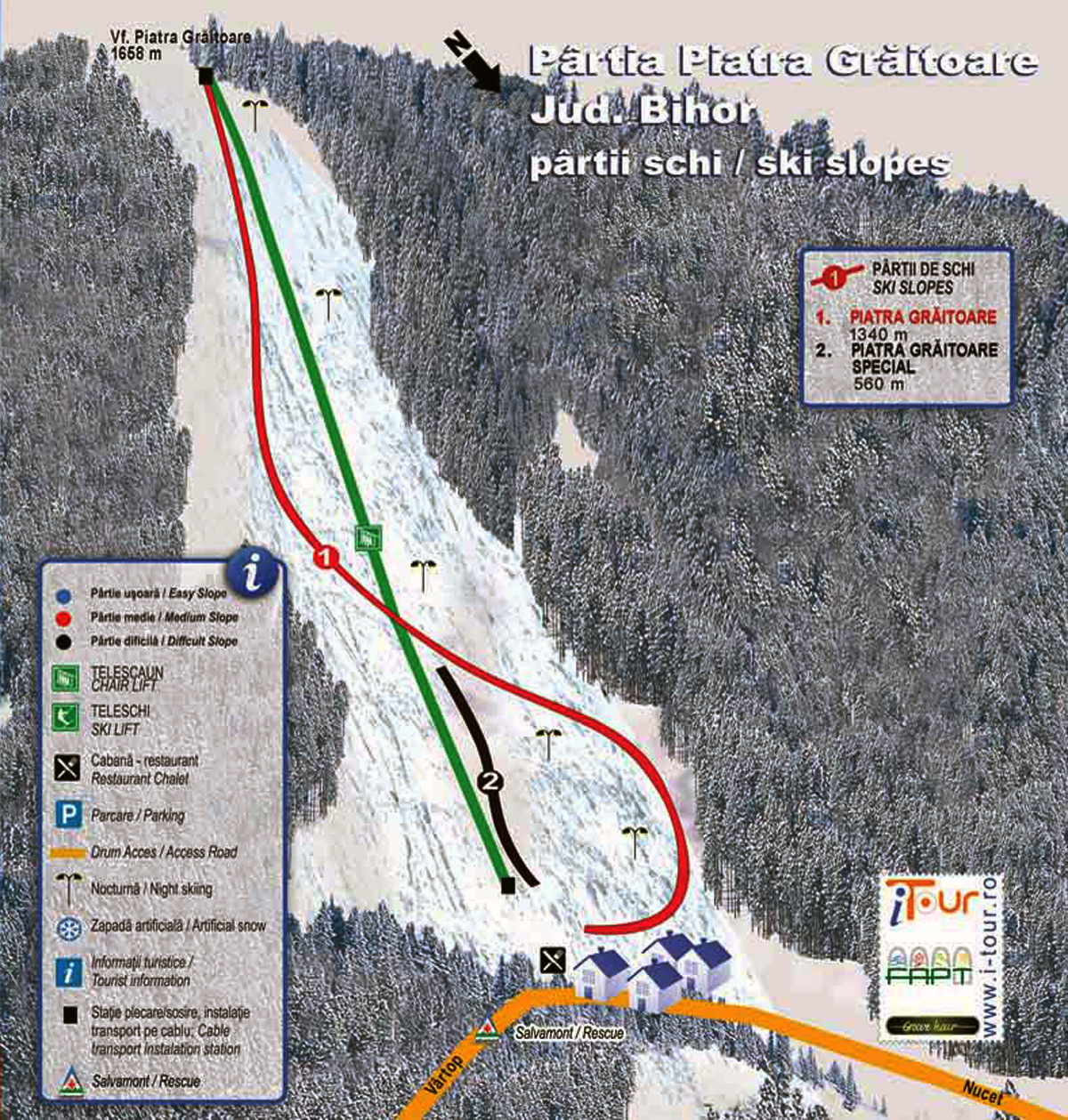 Pârtia este dotată cu un telescaun modern cu patru locuri.Harta-partii-Piatra-Graitoare