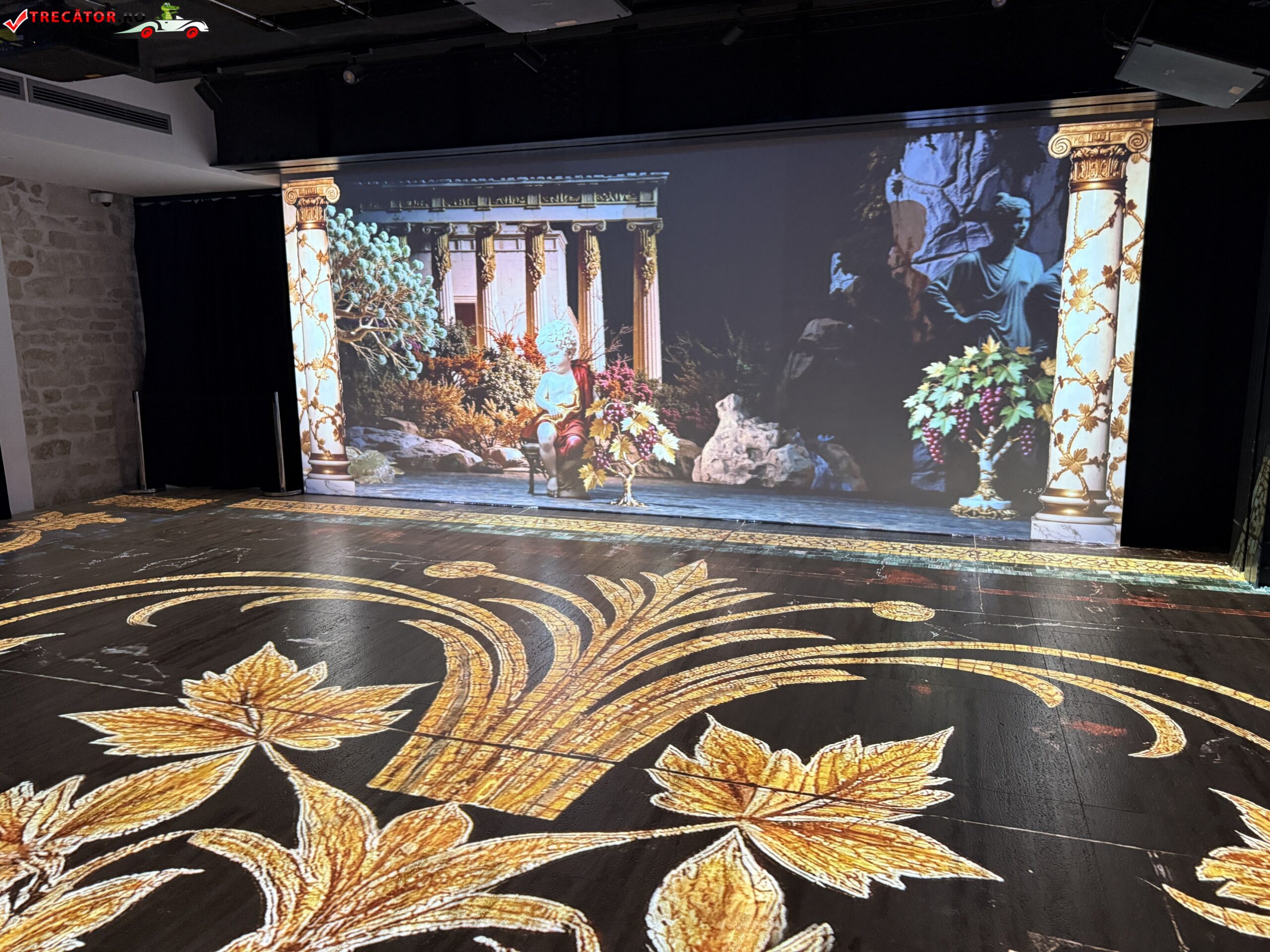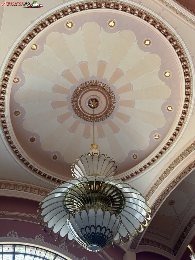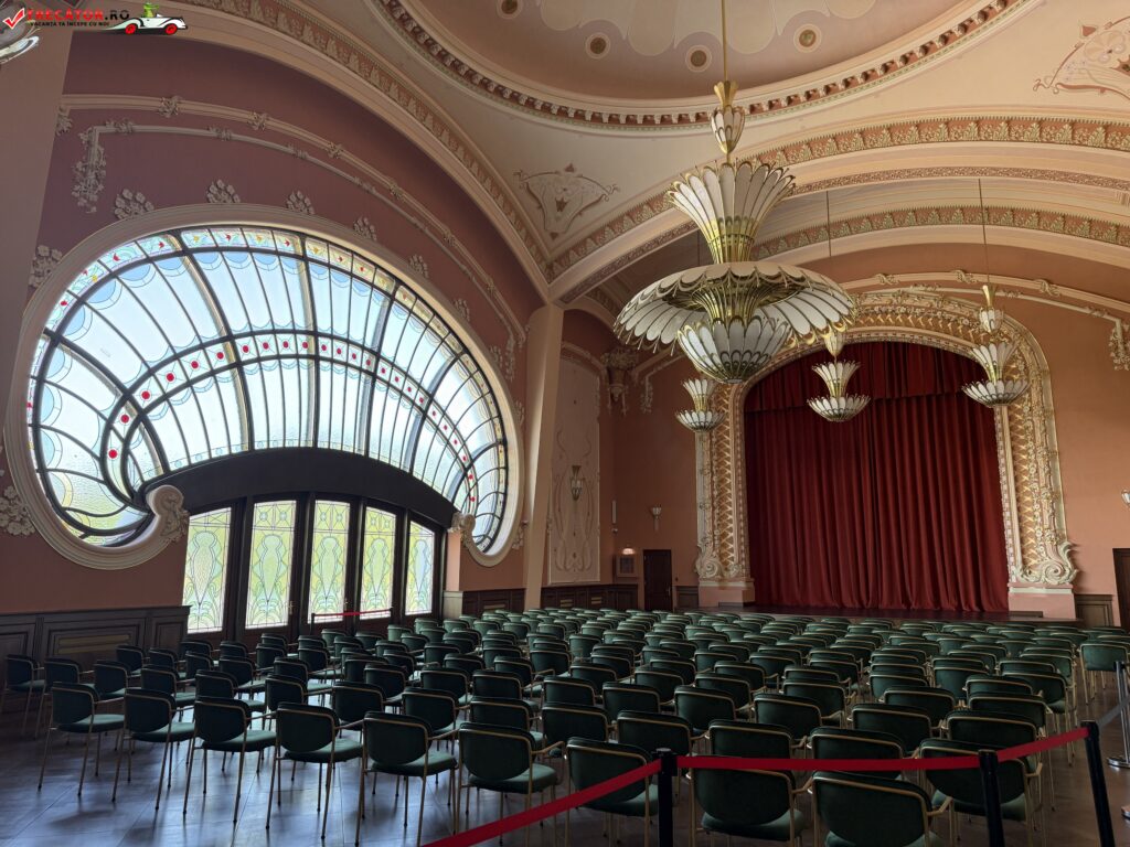 Odată pășit înăuntru, vizitatorul este copleșit de rafinamentul designului Art Nouveau – ornamente florale pe pereți și tavane, corpuri de iluminat din alamă și sticlă opală, vitralii impunătoare, balustrade din fier forjat și pardoseli din marmură provenite din Grecia, Italia și Egipt. Scenele acoperite cu foiță de aur reînvie grandoarea scării și a scenei de la etaj – „o operațiune migăloasă, dar spectaculoasă”.