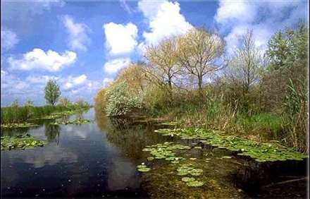 Lacul Razim are o suprafata de 415 kmp si o adancime de maxim 2,8 m. Laguna Razim este legata cu bratul Sfantu Gheorghe prin canalele Dranov si Dunavat de unde primeste un aport fluvial provenit din Dunare.