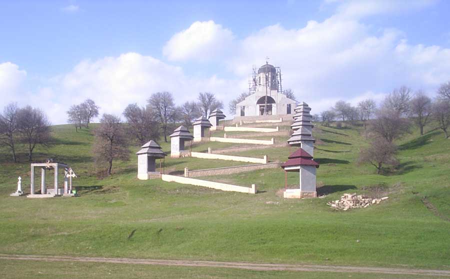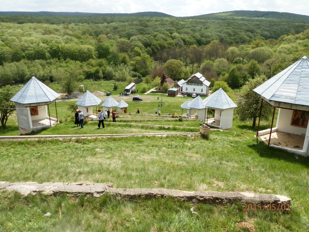 Pe dealul din fata este infatisat, in miniatura, drumul Golgotei. Cele 9 opriri ale lui Isus purtand crucea in spate sunt simbolizate prin 9 troite unde credinciosii aprind lumanari. Urcand pe drumul ce serpuieste printre cele 9 constructii, ajungi la capela din varful dealului. De aici ti se deschide o panorama a manastirii si a imprejurimilor.