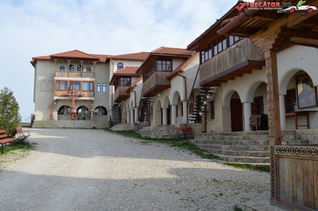 E locul în care camionul de transport s-a împotmolit, obligându-i pe muncitori să descarce enervaţi şi la întâmplare containerele de tablă. Aşa au petrecut călugării iarna viscolită, neobişnuit de grea, a anului 2002 – în două barăci culcate într-o rână, dormind îmbrăcaţi, fără lemne, fără curent electric. Nici apă nu aveau. O aduceau cu cârca, în bidoane de plastic, din satul vecin, cale de 4-5 kilometri. Plecau dimineaţă şi ajungeau frânţi de oboseală, abia după prânz. Mâncau pâine uscată şi îşi drămuiau apa, amăgindu-se cu un ceai abia dezmorţit. Într-o sobiţa de fontă, făceau foc o dată în zi, din vreascuri şi cotoare de porumb găsite pe câmp. Vântul suflă în voie prin duşumeaua neizolată, prin colţurile neîmbinate ale pereţilor de tablă, iar dimineaţa se trezeau înţepeniţi, cu promoroacă în păr şi barbă.