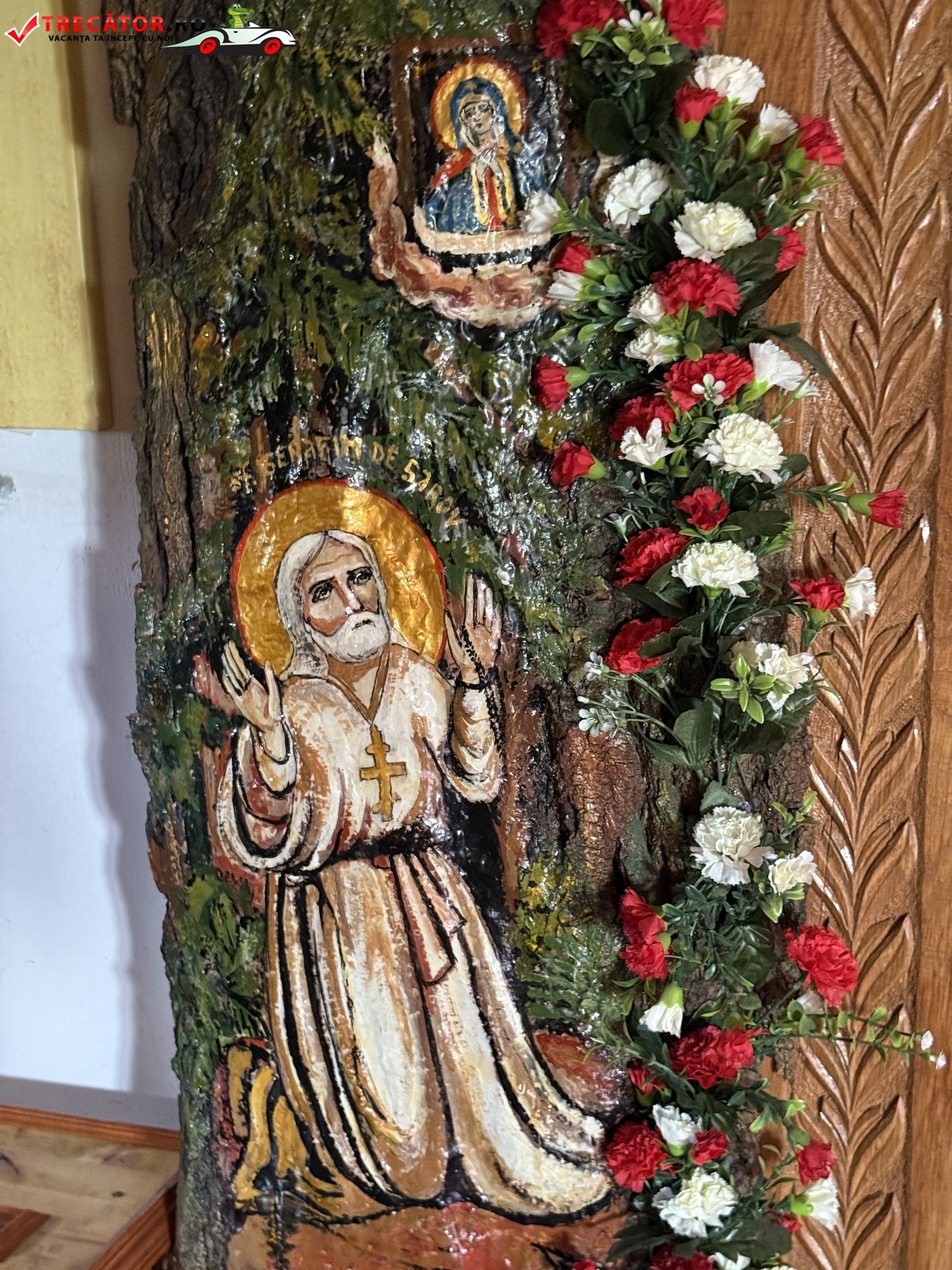 Sfântul Serafim de Sarov, ocrotitorul mănăstirii, este una dintre cele mai luminoase figuri ale Ortodoxiei. Născut în 1759 la Kursk, în Rusia, și trecut prin numeroase încercări, el s-a retras la Sarov unde a dus o viață de pustnicie și rugăciune. Cunoscut pentru smerenia și dragostea sa nemărginită față de oameni, Serafim a devenit simbolul blândeții și al rugăciunii neîncetate. Este unul dintre sfinții cei mai iubiți atât în Rusia, cât și în întreaga lume ortodoxă.