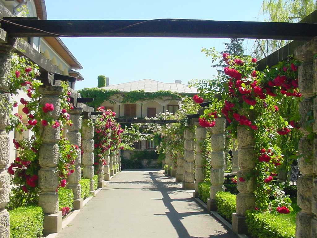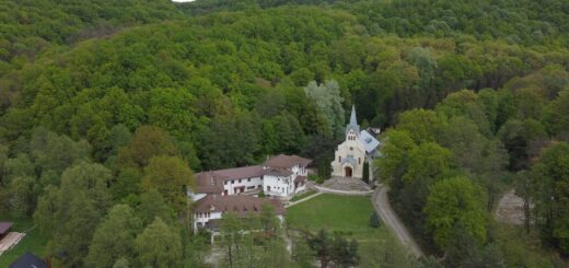 Lăcașul este împodobit cu motive populare românești și cruci.