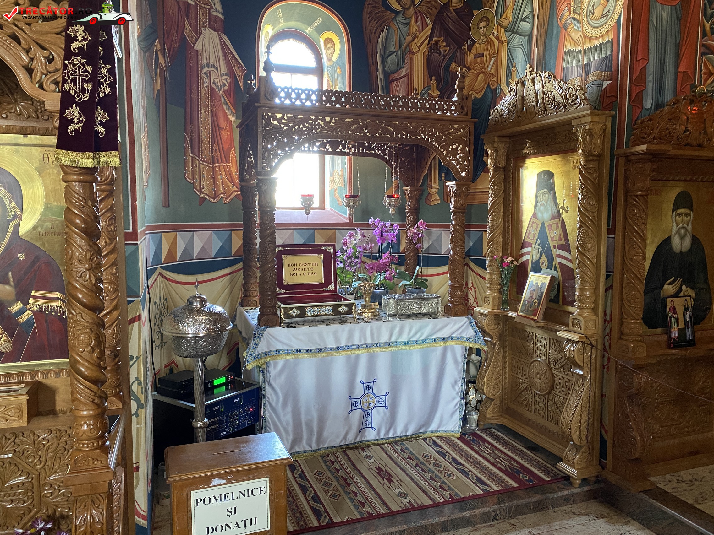 În acest fel, sfântul ocrotitor al noii manastiri a binevoit sa vina si pe pamântul românesc al Dobrogei pentru a fi spre închinare si spre ajutor tuturor celor care vor alerga la racla cinstitelor sale moaste, smerindu-se asemenea Stapânului sau Care pogorându-Se pe pamânt a ales a se naste într-un grajd saracacios.