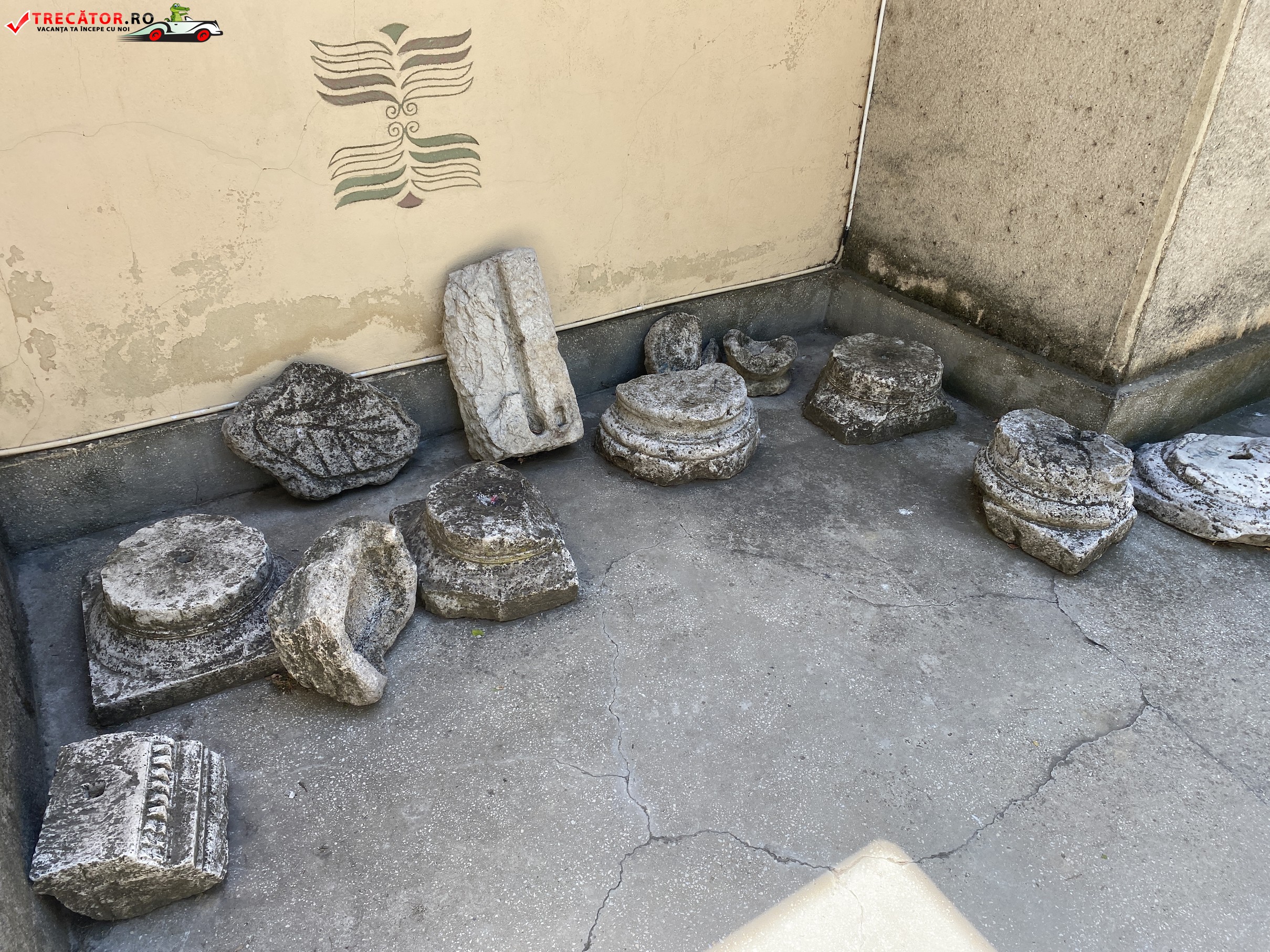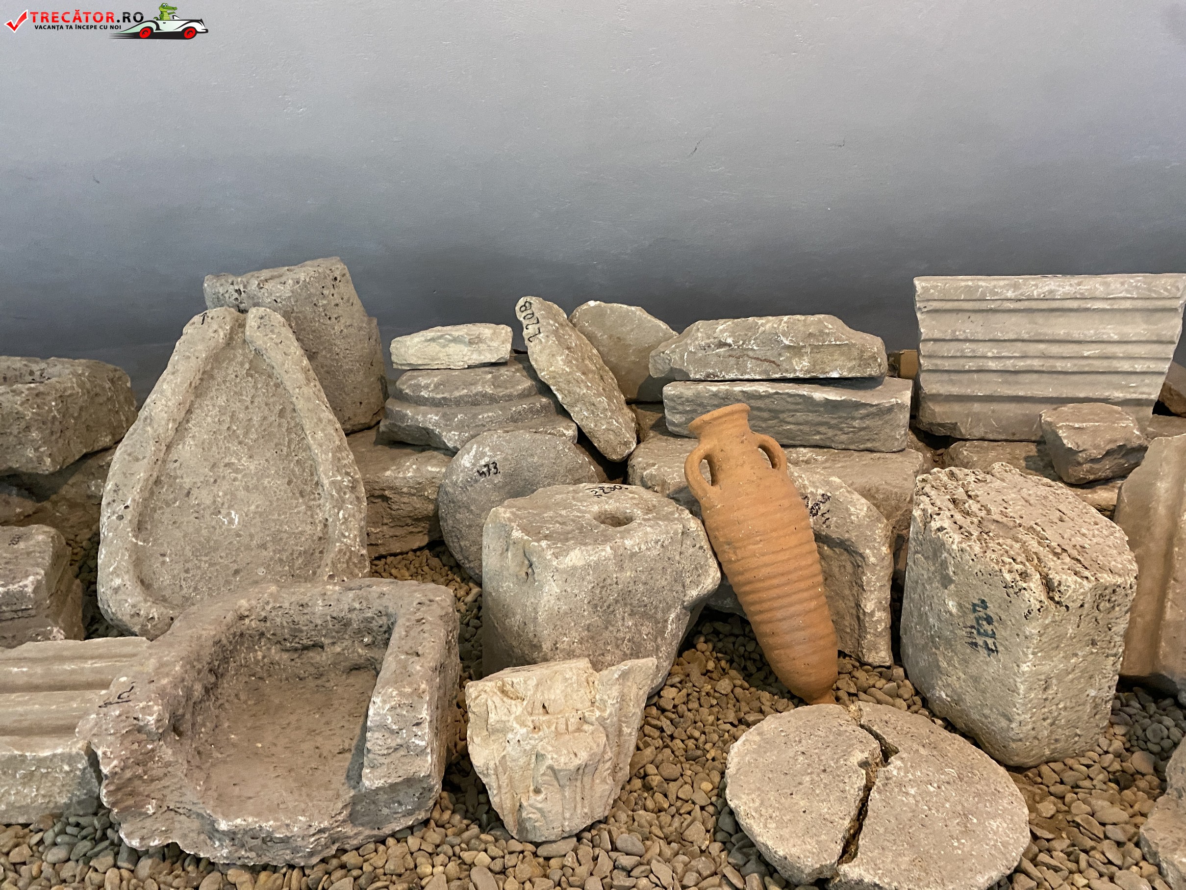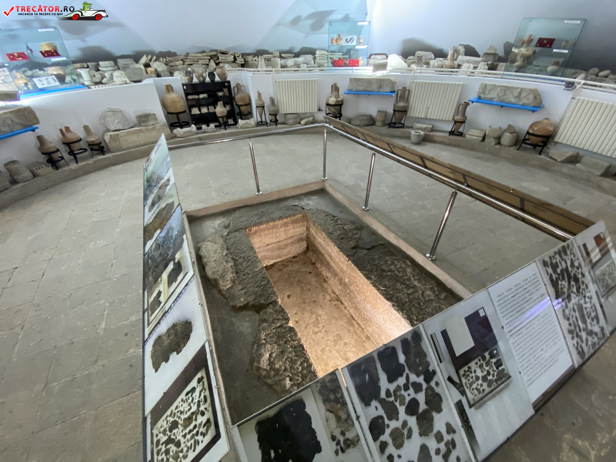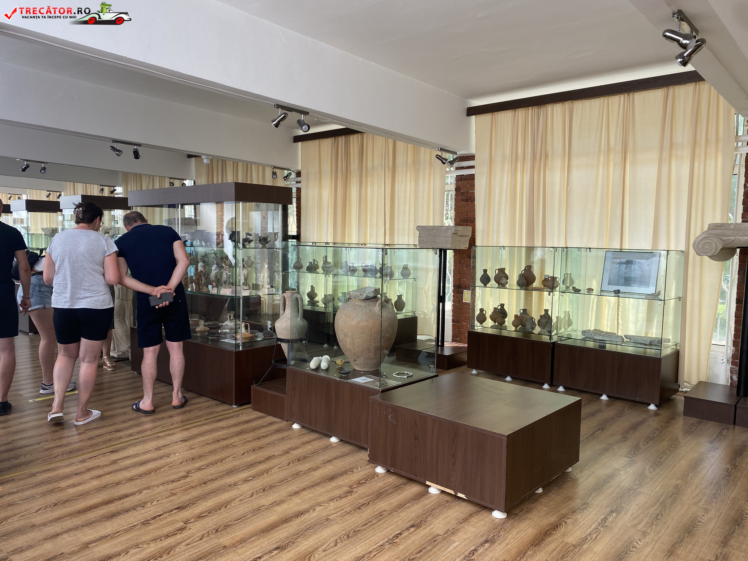 In cadrul expozitiei organizate in interioriul muzeului vizitatorii pot admira coloane, capiteluri, frize cu metope, vase ceramice, amfore, opaite, statuete, vase din sticla, stele funerare, inscriptii, reprezentatii ale unor zeitati, podoabe si bijuterii, monede, ustensile si multe alte obiecte cu insemnatate istorica.