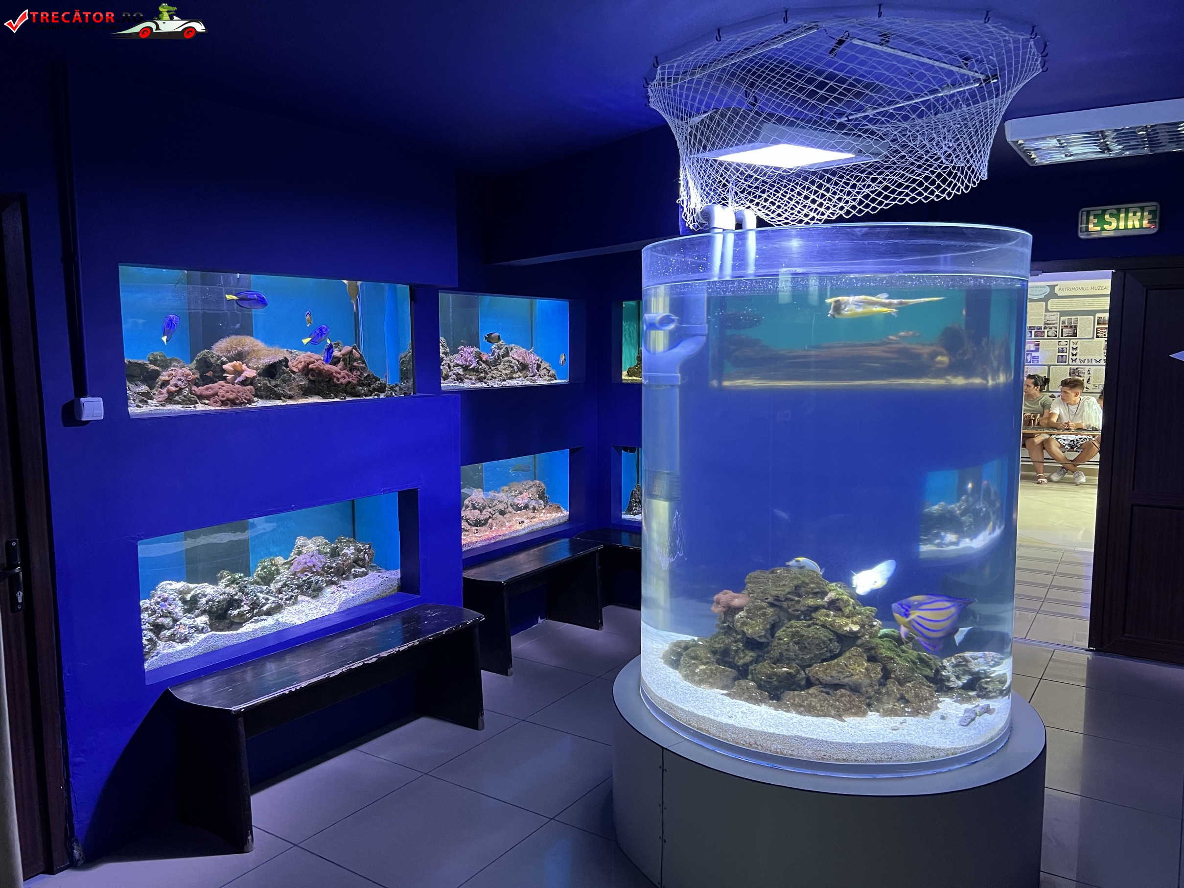 Acvariile cu specii de pești si nevertebrate întâlnite in recifele de corali constituie o noutate pentru Tulcea, și chiar pentru acvariile din România, amenajate într-un spațiu public.