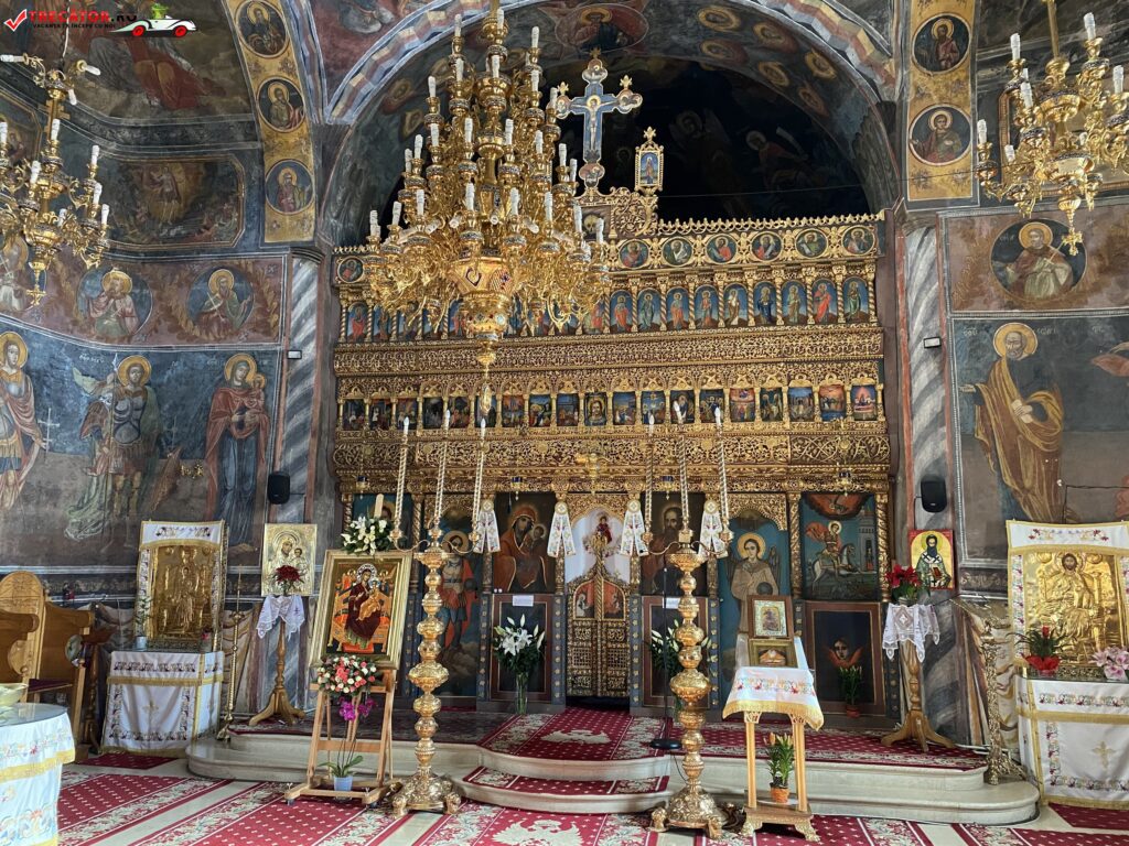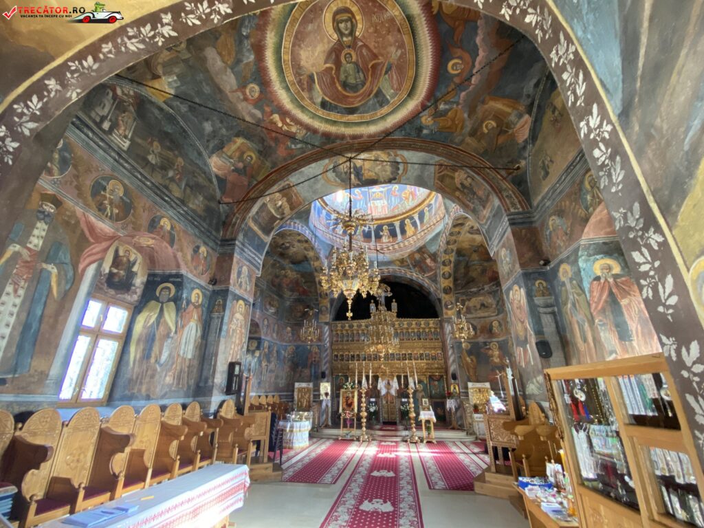 Stilul este cel bizantin, iar vigoarea compozițiilor vădeşte mâna unui pictor bun. Pictura a mai suferit intervenții și refaceri; evidente sunt ornamentele imprimate cu șablonul pe arce, precum și diferite fonduri albastre de pe veșmintele personajelor. Catapeteasma de lemn, bogat sculptată în stil brâncovenesc, menționată în documentele anterioare, este în prezent demontată.