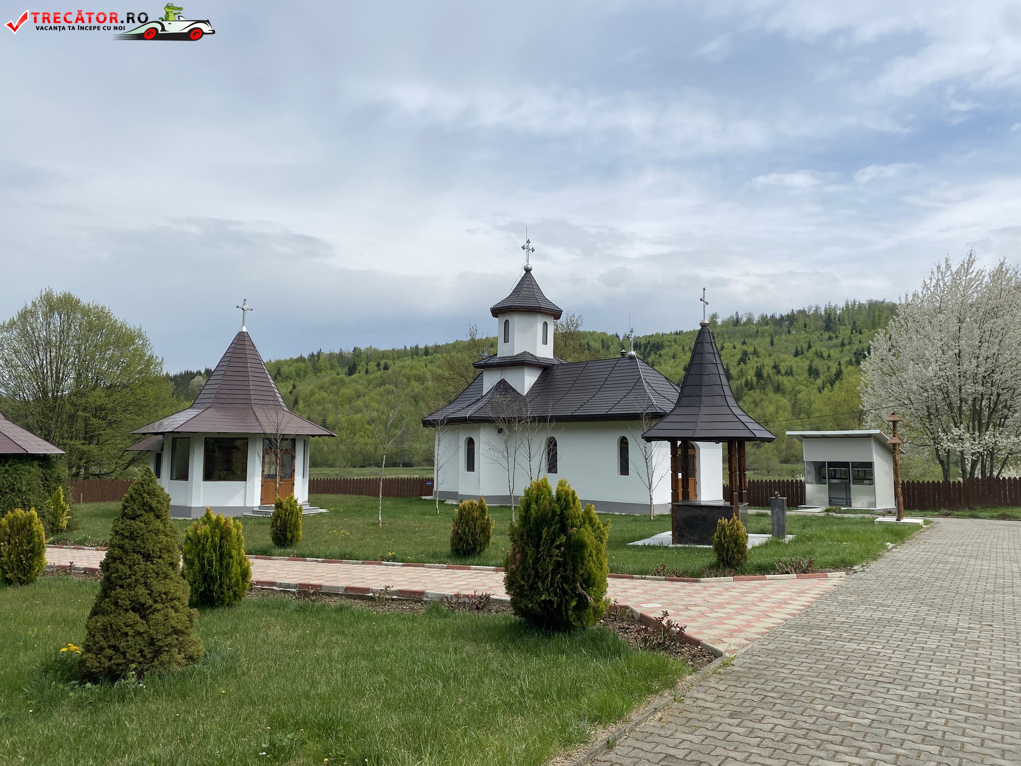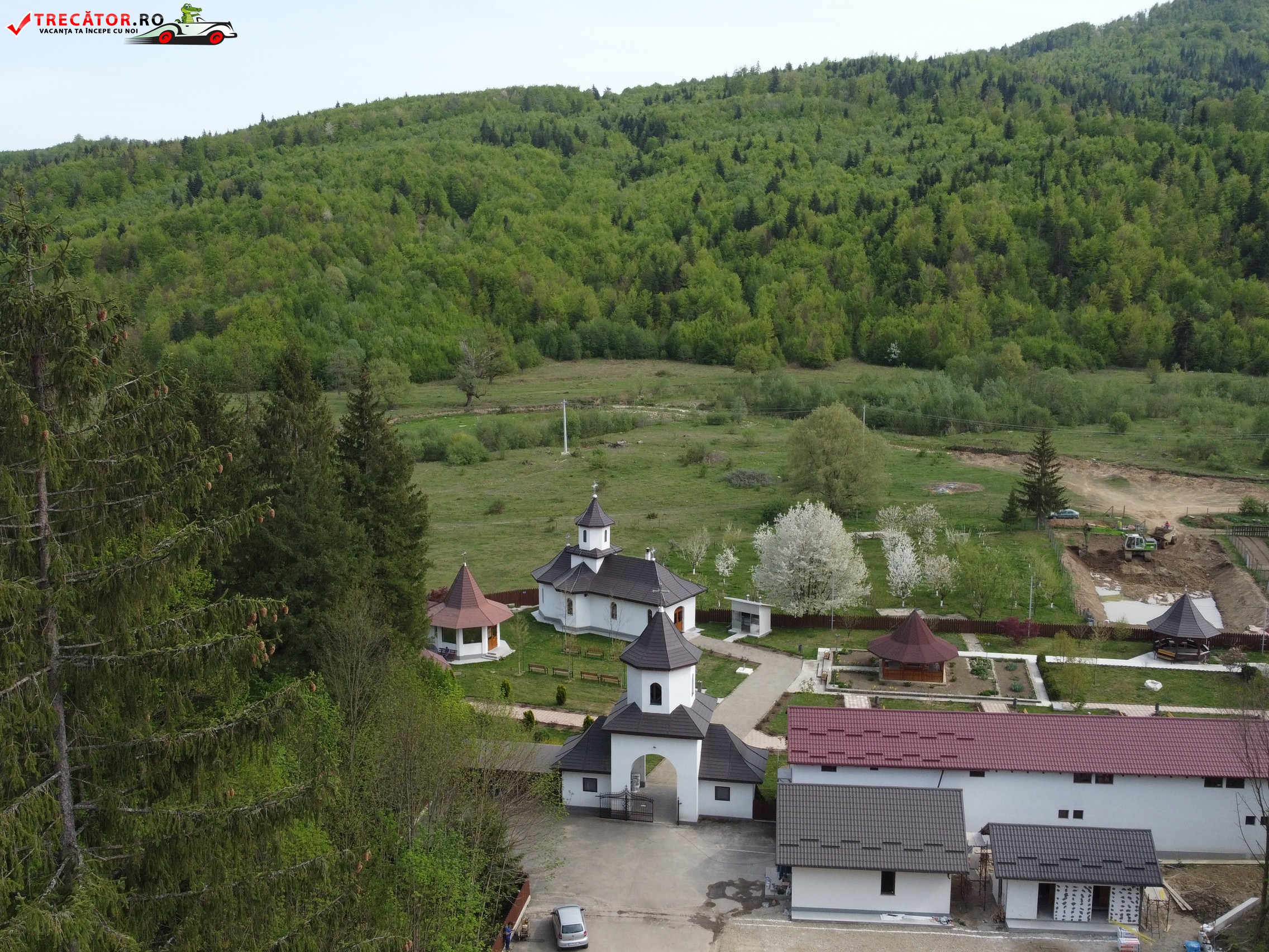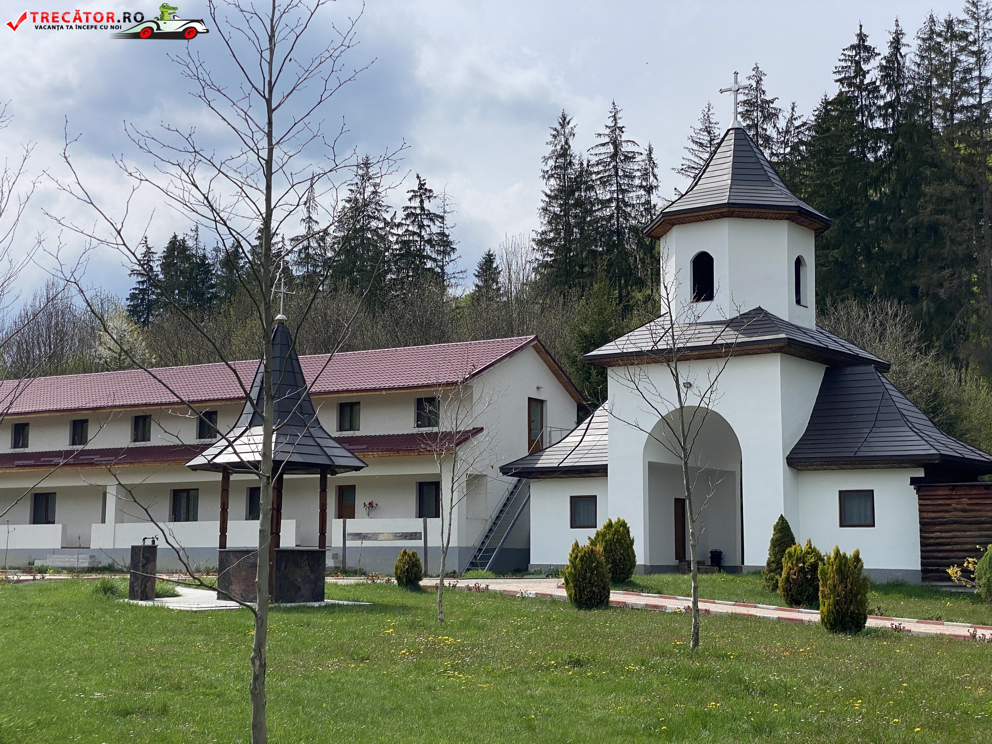 În aprilie 2002 s-a început construirea unui corp de chilii, apoi s-a pus temelia bisericii cu hramul ”Sfinții Împărați Constantin și Elena”, biserică care a fost sfințită de Înaltpreasfințitul Epifanie Norocel în 21 mai 2005. Ulterior, ctitorii au construit și o clopotniță și o troiță la marginea șoselei. Toate aceste construcții au fost făcute din lemn de brad, în stil arhitectonic moldovenesc, având aplicat în exterior lambriu din scândură de brad care imită cărămida.