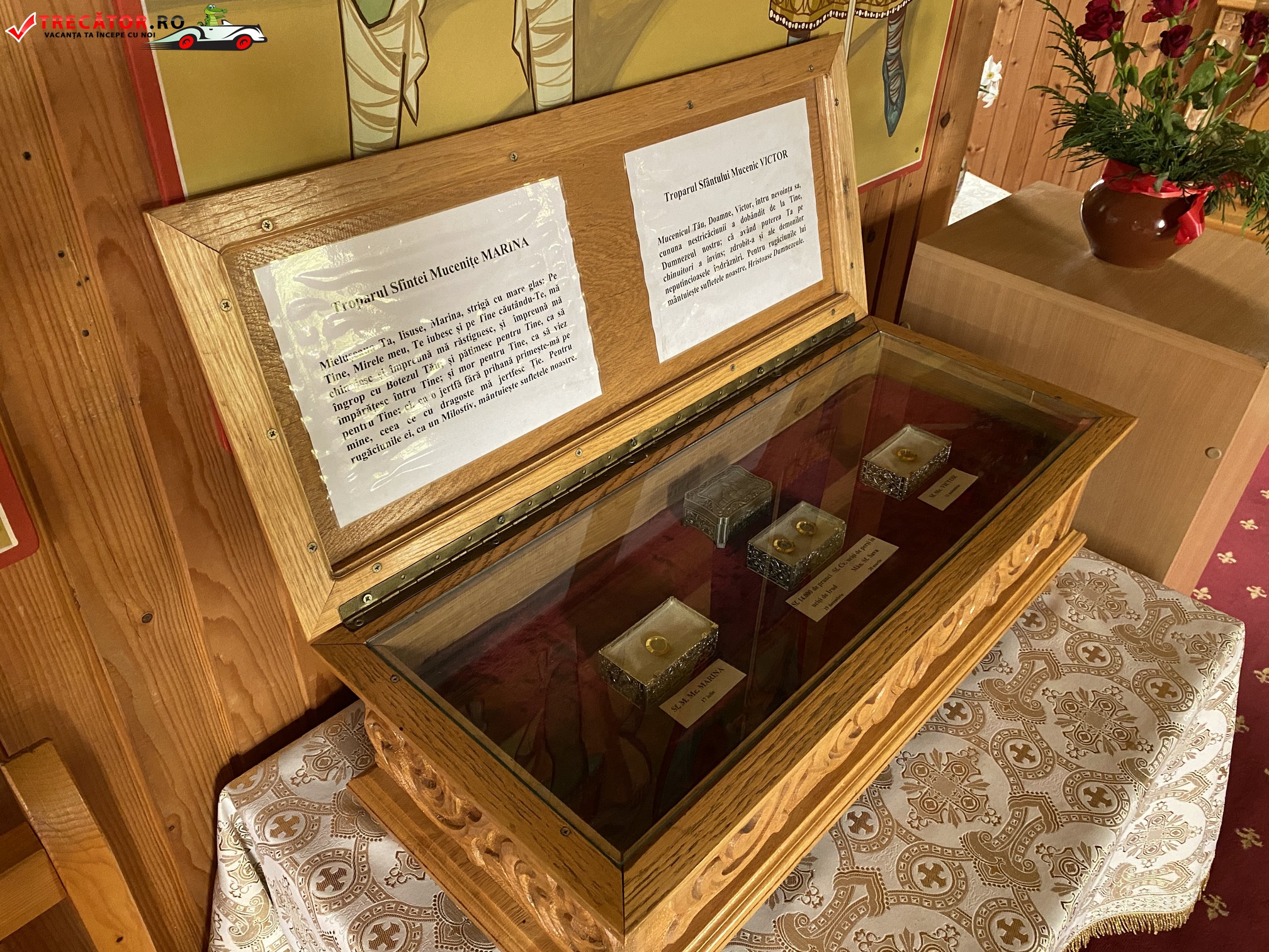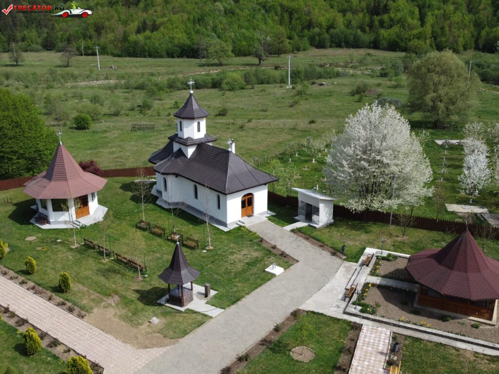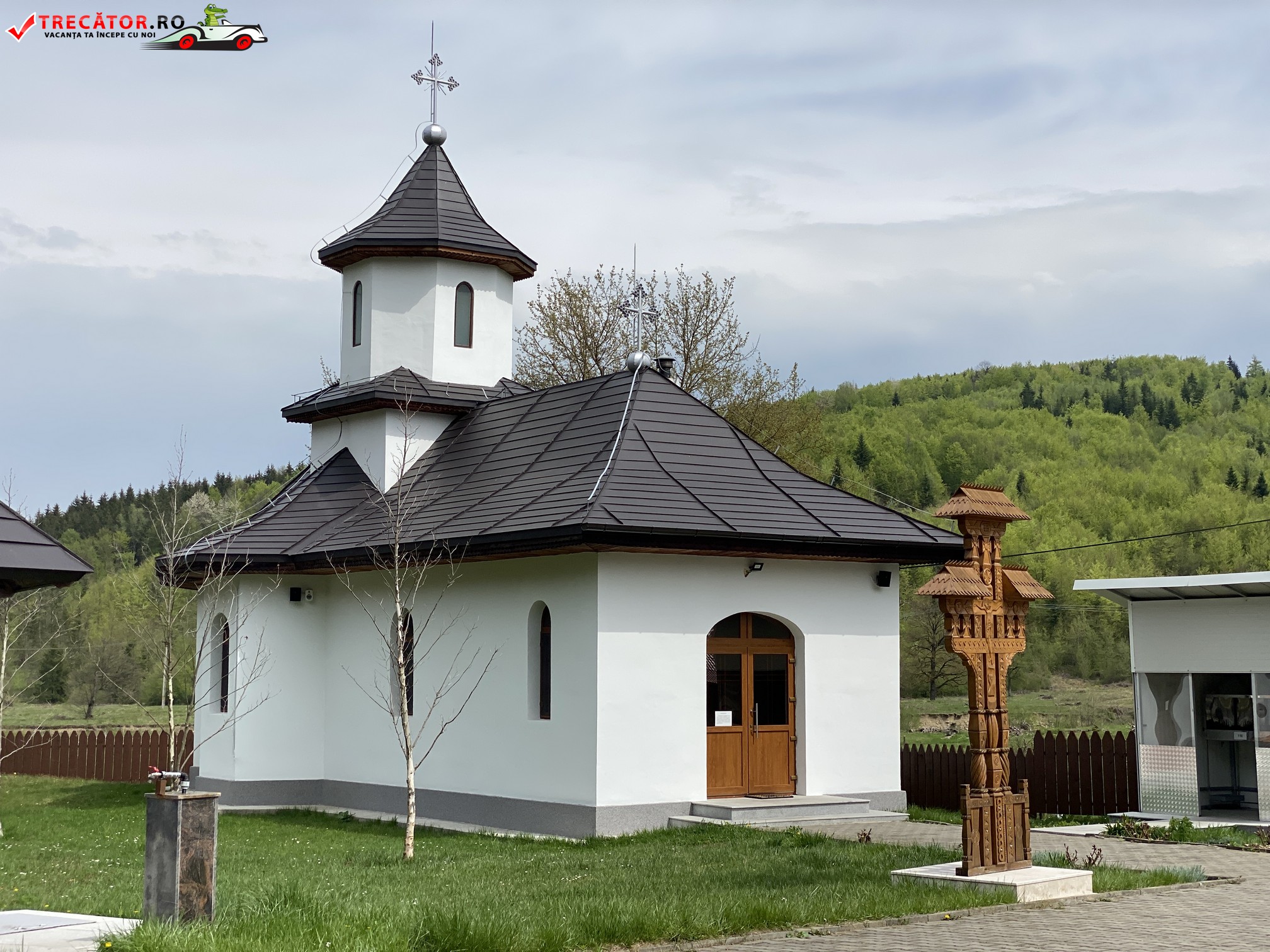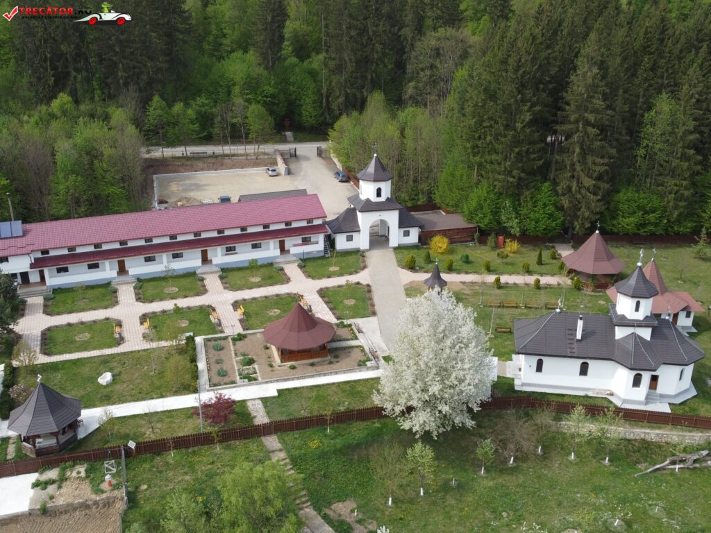 În aprilie 2002 s-a început construirea unui corp de chilii, apoi s-a pus temelia bisericii cu hramul ”Sfinții Împărați Constantin și Elena”, biserică care a fost sfințită de Înaltpreasfințitul Epifanie Norocel în 21 mai 2005. Ulterior, ctitorii au construit și o clopotniță și o troiță la marginea șoselei. Toate aceste construcții au fost făcute din lemn de brad, în stil arhitectonic moldovenesc, având aplicat în exterior lambriu din scândură de brad care imită cărămida.