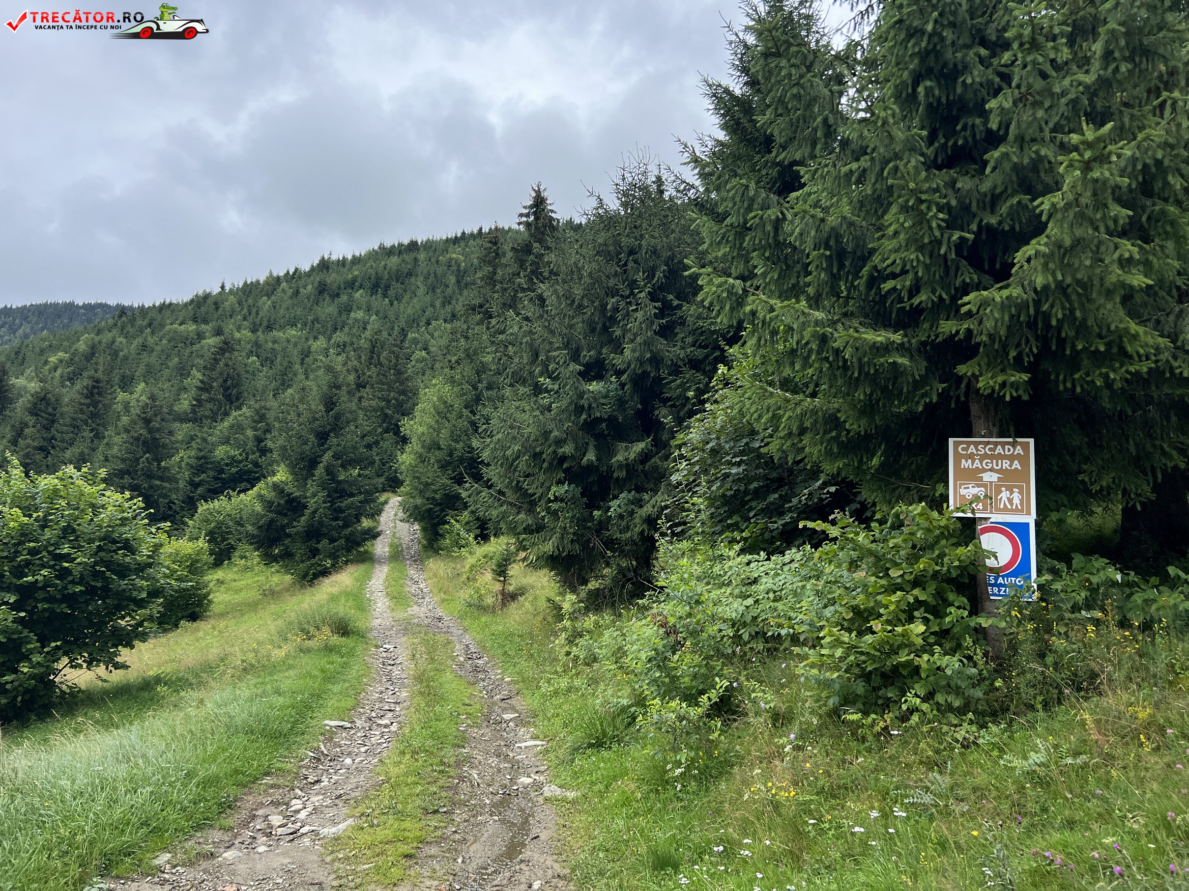 Aici părăsim drumul amenajat de primărie și accesul tuturor autovehiculelor este interzis. Drumul se înfundă în aproprierea cascadei Măgura.