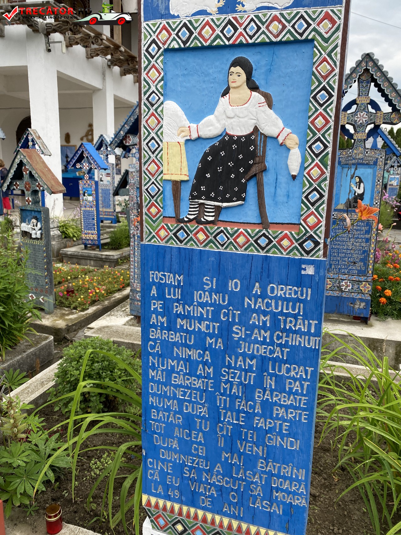 Nici o cruce nu e terminata fara o scurta poezie, citeva rime simple, intre 7 si 17. Epitafurile sint sincere, spontane si scrise la persoana I, mesaje adresate de persoana decedata celor care traiesc. Stilul este liric dar satira se gaseste frecvent. Fiecare poem contine numele celui decedat precum si un aspect esential din viata respectivei persoane.