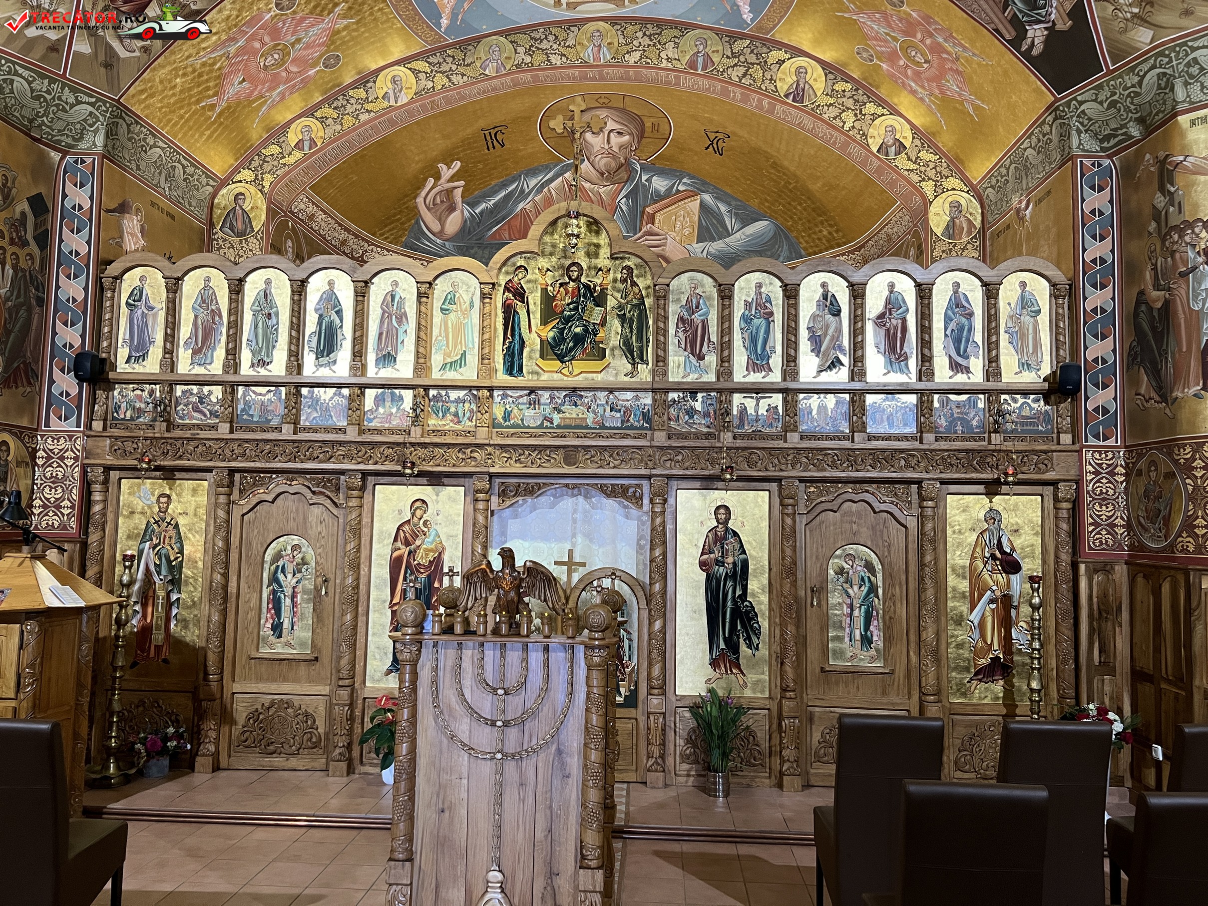 Tot pe acest altar, lângă racla cu sfintele moaște, în crucea folosită pentru binecuvântare la praznice, se găsește o mică părticică din lemnul Sfintei Cruci a lui Isus.