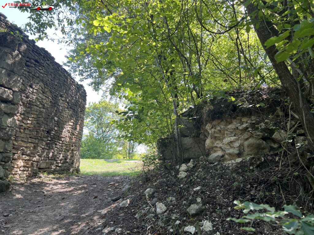 Alte ruine, înalte de peste 2,5 metri, se găsesc împletite în vegetaţia agresiv dezvoltată, dar şi pe drumul lung de acces.