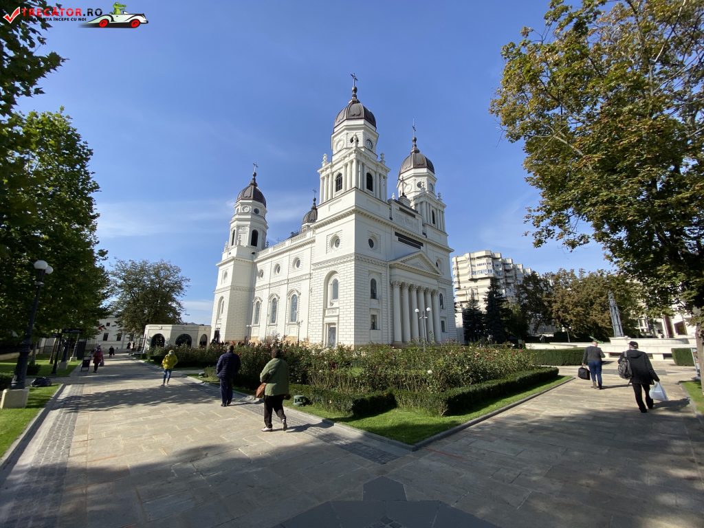 Sfințirea Catedralei, la 23 aprilie 1887, a fost un eveniment național, la ceremonie luând parte regele Carol I și regina Elisabeta. Pisania aflată în partea dreaptă a pridvorului catedralei, pe o placă de marmură care se află la intrare, conține următorul text: