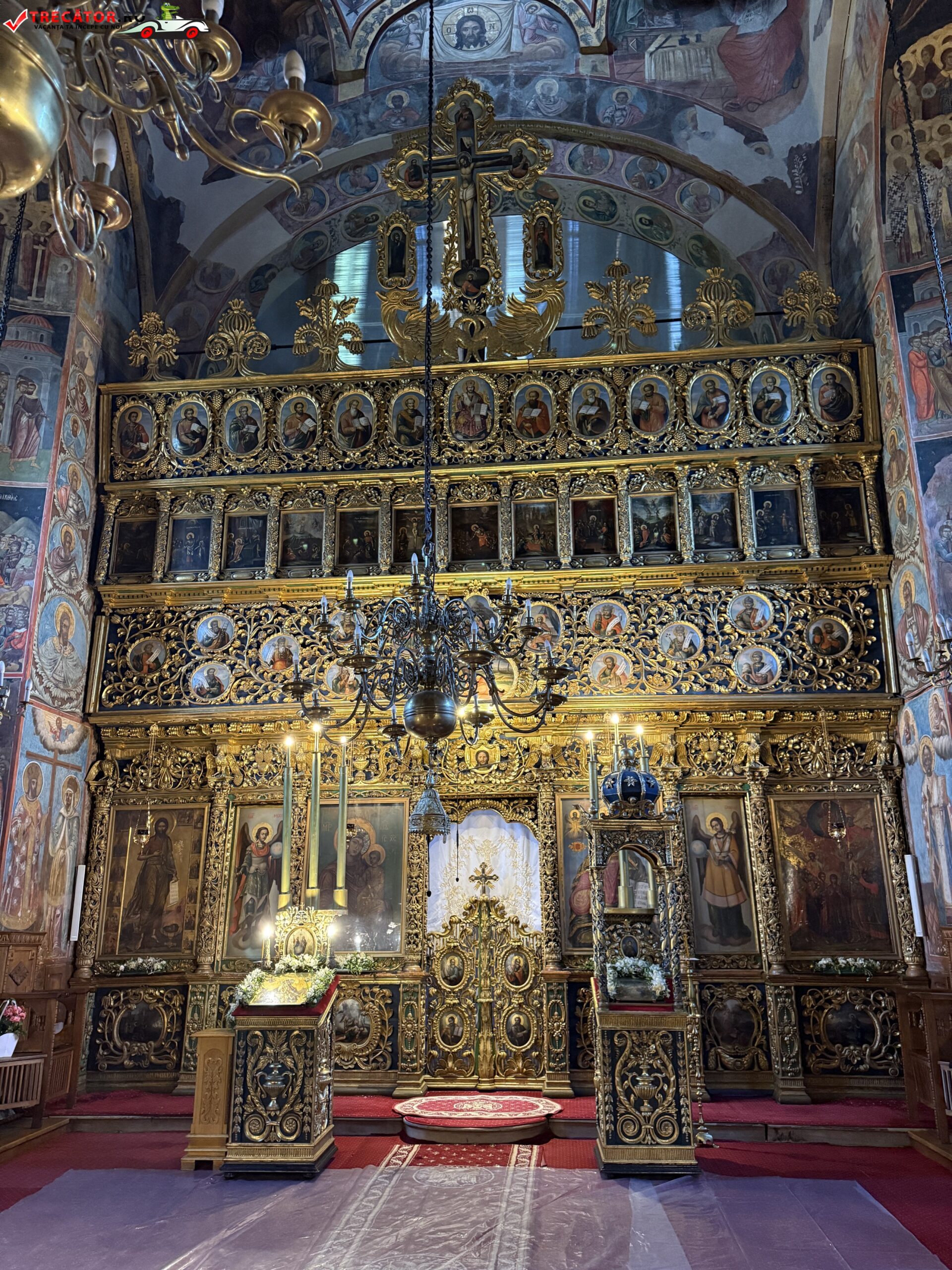 De la turlă, dinspre naos, coboară un zis sisținut de două coloane mari octogonale. În fața acestor coloane, către naos, se află scaunele domnești ale lui Vasile Lupu și soției sale, din lemn de chiparos, cu o sculptură deosebit de rumoasă. Interiorul bisericii adăpostește mormintele unor personalități ale epocii.