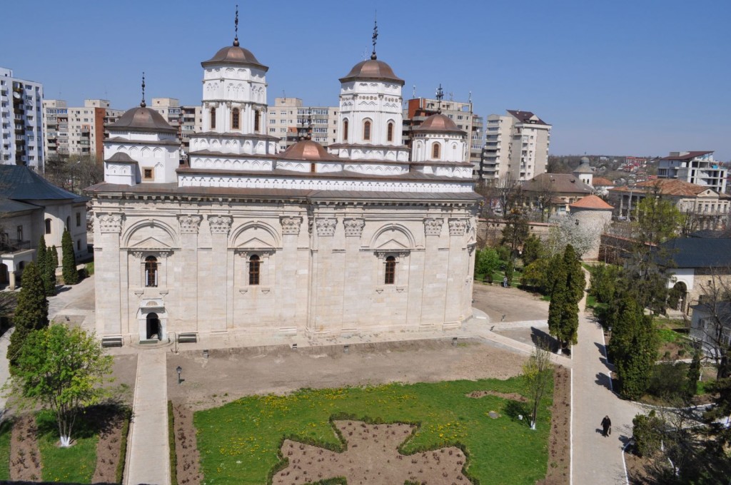 Ferestrele bisericii sunt duble, terminate în arc, cu grilaje metalice la exterior. Pridvorul, cu intrare la sud, are două portaluri asigurate de uși în metal forjat. Deasupra ușii se află unica ferestră care luminează pridvorul. Ușile de acces spre pridvor și spre pronaos sunt înconjurate de o frumoasă sculptură în marmură cu stema Moldovei.