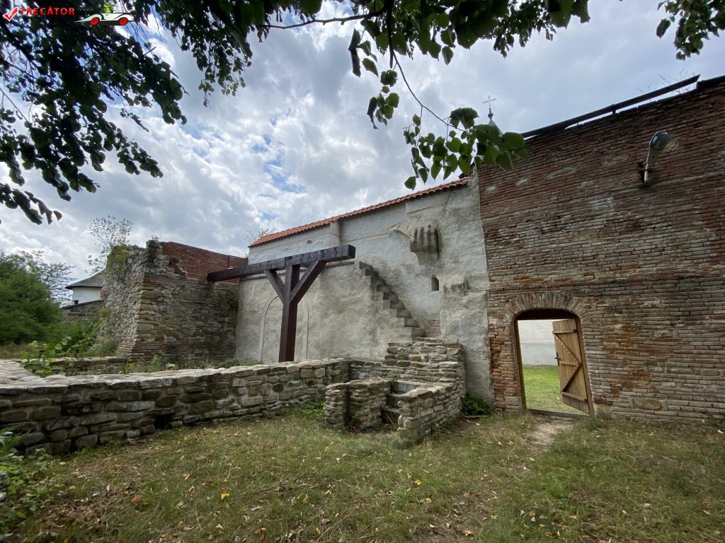 Intrarea se face printr-un turn-clopotniță care are o poartă de lemn masiv întărită cu fier, pe o ușă de mici dimensiuni care te obligă să te apleci pentru a putea intra. În trecut, era o măsură de apărare pentru a împiedica o intrare forțată și mă bucur că s-a păstrat acest aspect și în ziua de azi.