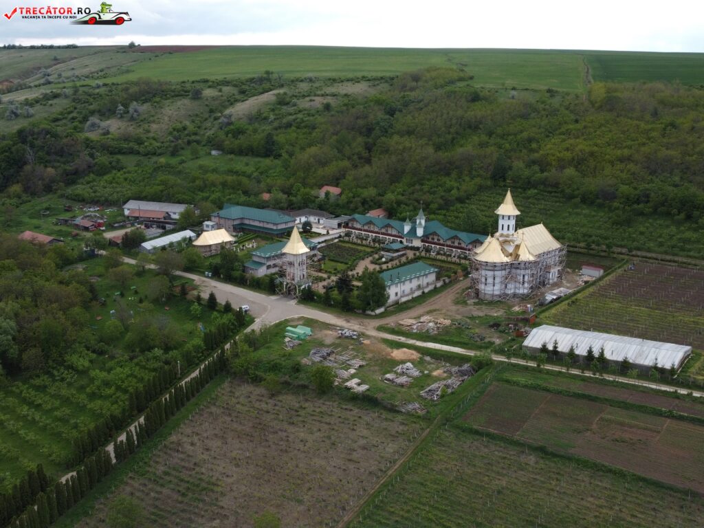 Complexul monahal, construit intr-un stil arhitectural unitar in care sunt preluate elemente traditionale, cuprinde: biserica si clopotnita veche, biserica-paraclis, turnul-clopotnita, chiliile, trapeza, Centrul Scriptoria, muzeul de arta religioasa, biblioteca, cladirile anexe si zidul de incinta.