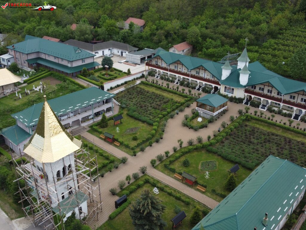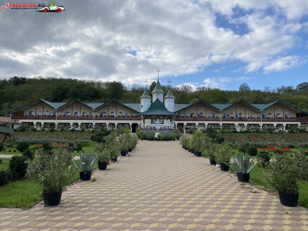 Turnul Clopotnita, de 23 de metri, este unul dintre cele mai impunatoare din zona, impresionand prin monumentalitate si armonia proportiilor. Poarta acestei constructii este sculptata de mesterul C. Modoranu in anul 1997. Chiliile sunt construite de o parte si de alta a bisericii paraclis si in celelalte doua cladiri, dinspre nord si sud, ale complexului monahal.