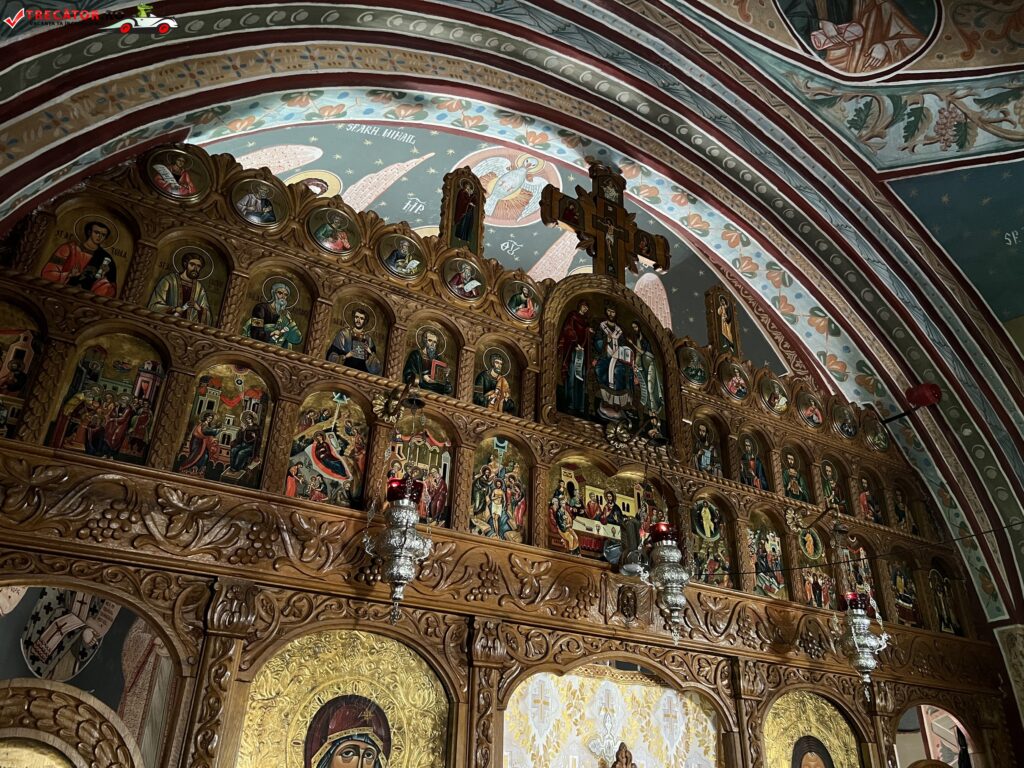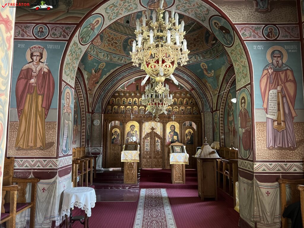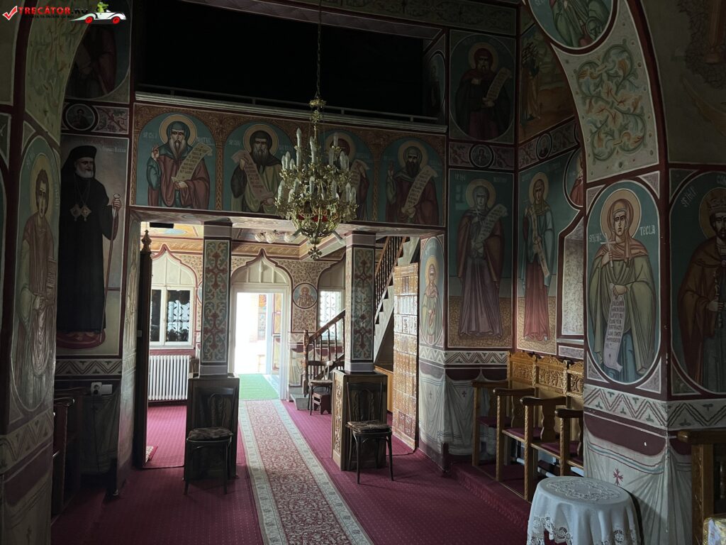 Intrarea in biserica se face pe o usa metalica, in fostul pridvor, care astazi este o prelungire a pronaosului. La randul sau, pronaosul este delimitat de naos, prin stalpi de zid. Catapeteasma bisericii este din lemn si dateaza din anul 1987.