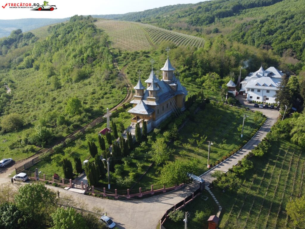 „Mai multă linişte”, spun unii. „Maicile sânt foarte omenoase, iar părintele ne e duhovnic”, spun alţii. Mănăstirea frumoasă, care privită din josul celor peste 100 de scări, pare că are turlele agăţate de cerul albastru, îi primeşte pe toţi. Deasupra uşii de lemn, scrie numele celui care, prin sârguinţa sa, le-a dăruit huşenilor această bijuterie pentru suflet: Preasfinţitul Ioachim Mareş.