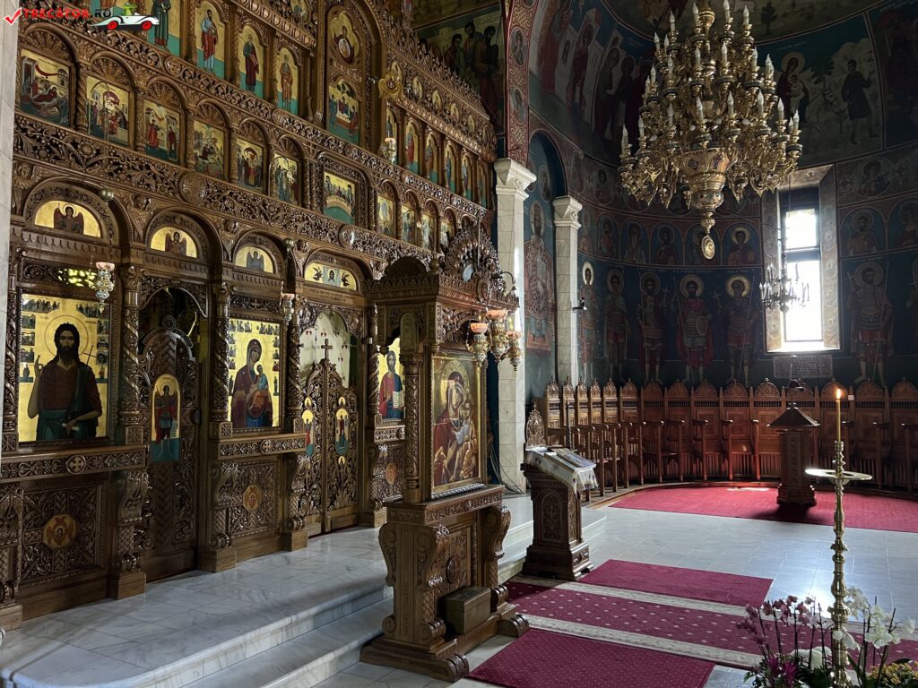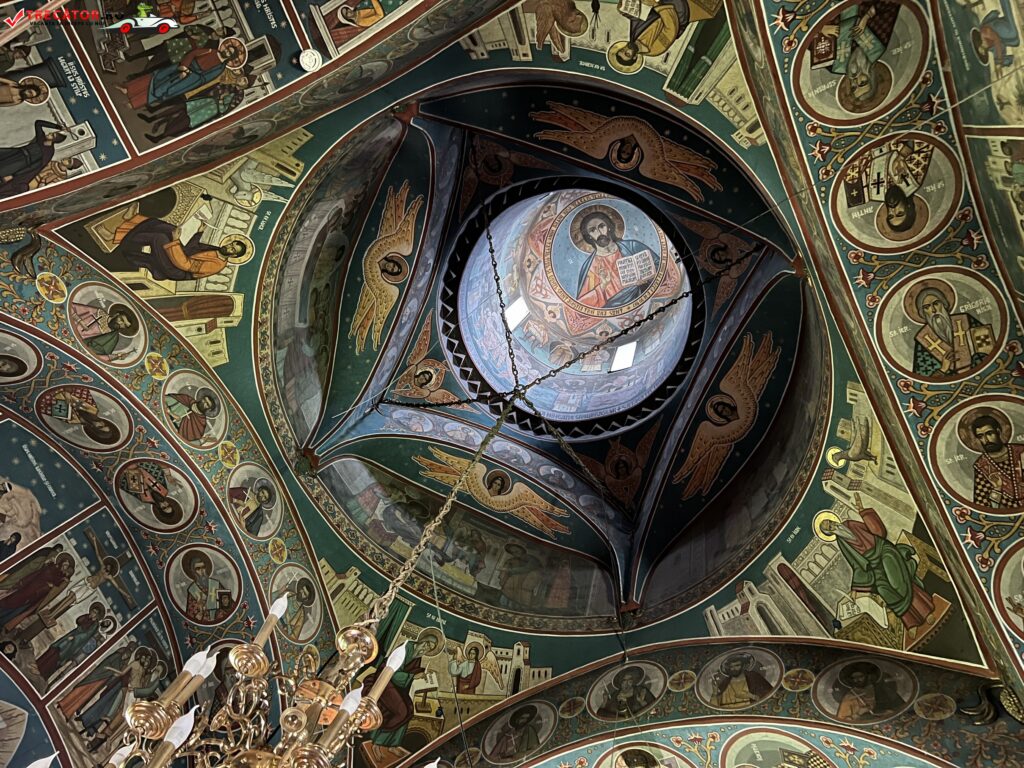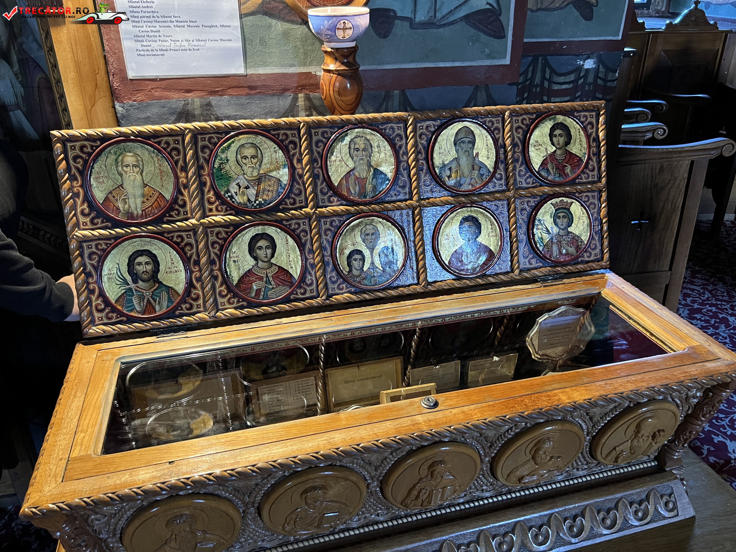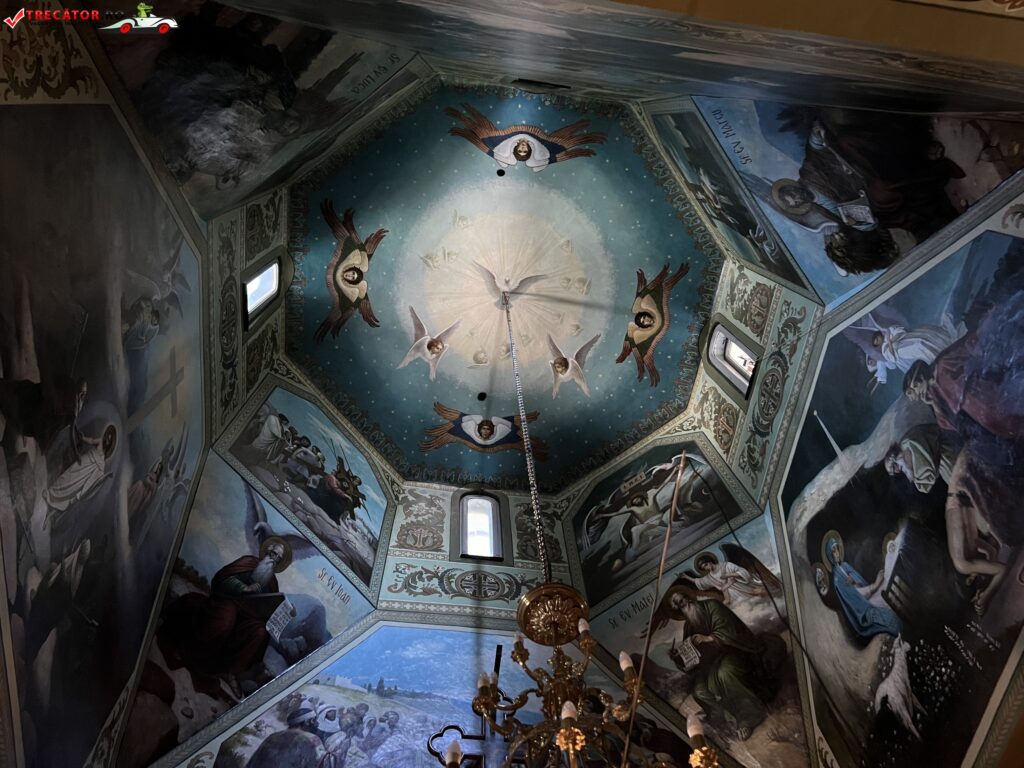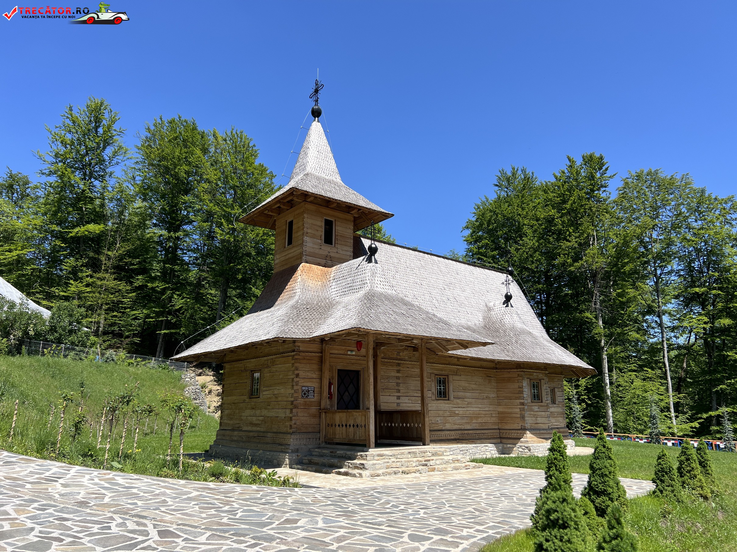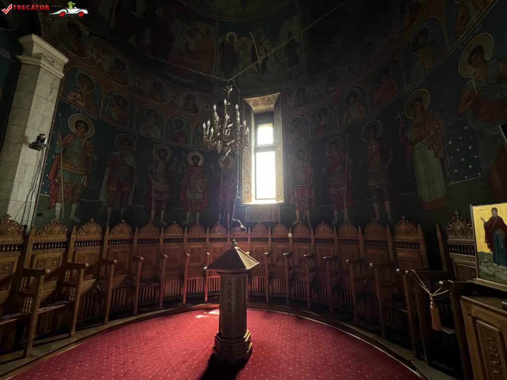 În pisania de deasupra uşii de intrare în biserică, pusă cu acest prilej, se poate citi: „Ac(e)astă sf(ântă) şi d(u)mnezeiască biserică s‑a ridicat din teme(lie) în cinstea Naşterii Preasf(intei) Născ(ătoare) de Dumnezeu şi pur(urea) Fecioare(i) Maria, împreună cu un rând de chilii şi cu zid împrejur şi ridicatul clopotniţei ce s‑au zidit… în vrem(ea) stăp(ânirii) binecred(inciosului) şi de H(ri)s(tos) iubitor(ul) nos(tru) Domn Io Ioan Sandu Sturza V(oie)v(o)d şi a preas(finţitului) mitrop(olit) a toată Moldova, kirio kir Veniamin Costachi, prin sârguinţa a prea cuvios(ului) arhim(andrit) şi stareţ sf(i)nte(lor) mon(astiri) Neamţul şi Sec(u), kir Dometian, cu ajutor(ul) iubitor(ului) de H(ri)s(tos) jupân Nicolae Cerneski, spre vec(i)nica lor pomenire. Anul 1825, sept(emvrie) 30”.