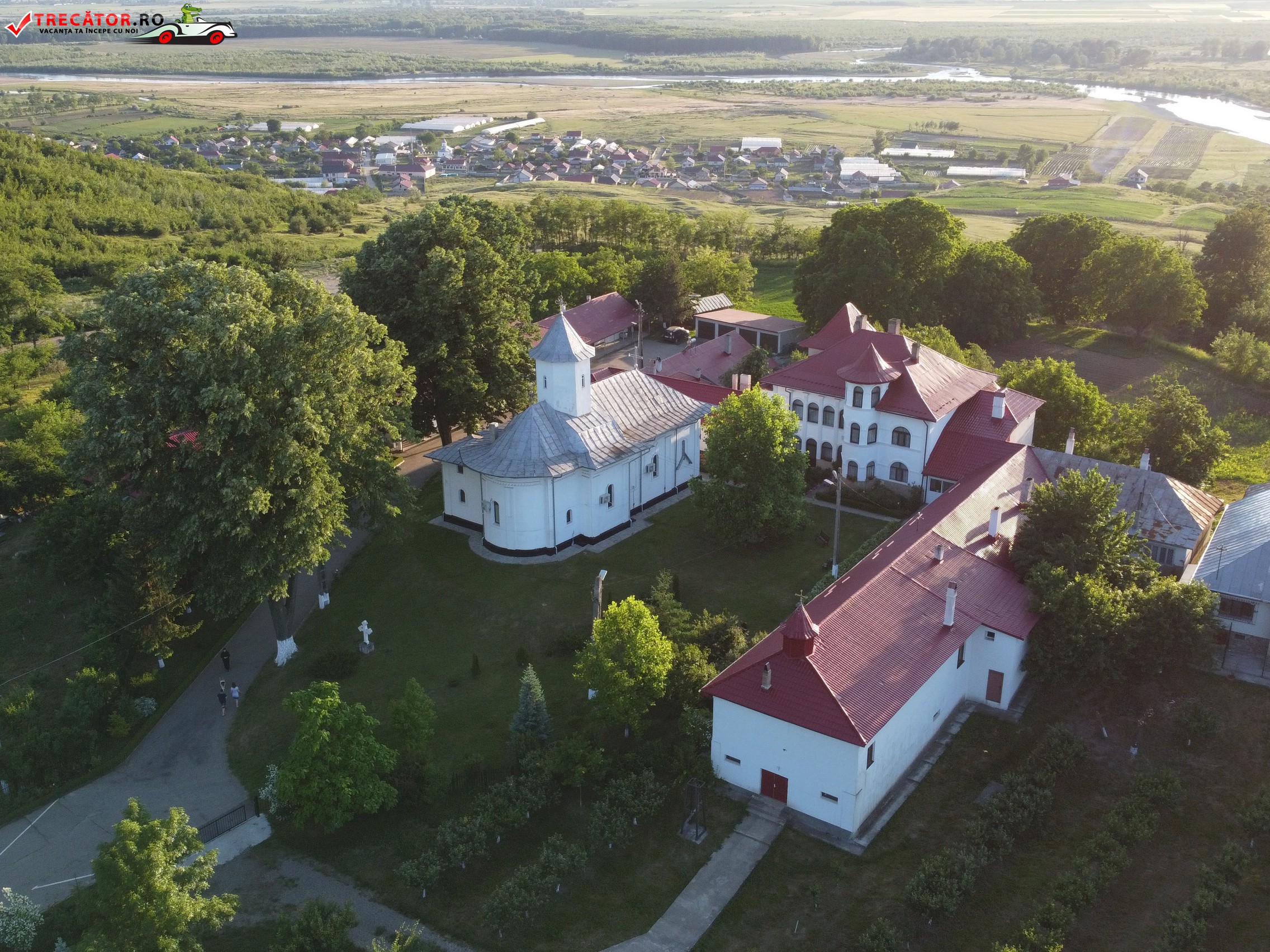 La inceput manastirea a avut biserica de lemn, iar biserica actuala a fost zidita abia in 1892 si a fost repictata dupa cutremurul din 1940. Pictura veche s-a deteriorat insa, astfel incat intraga biserica a fost repictata in anii ’80. Ultima restaurare, cu adaugiri si extinderi (turla pe naos si tinda) s-a facut intre anii 1980-85. Astazi, la exterior biserica este zugravita in alb, cu o spoiala de lapte de var, contrastand puternic cu interiorul bogat pictat, in stilul clasic al bisericilor moldovenesti.