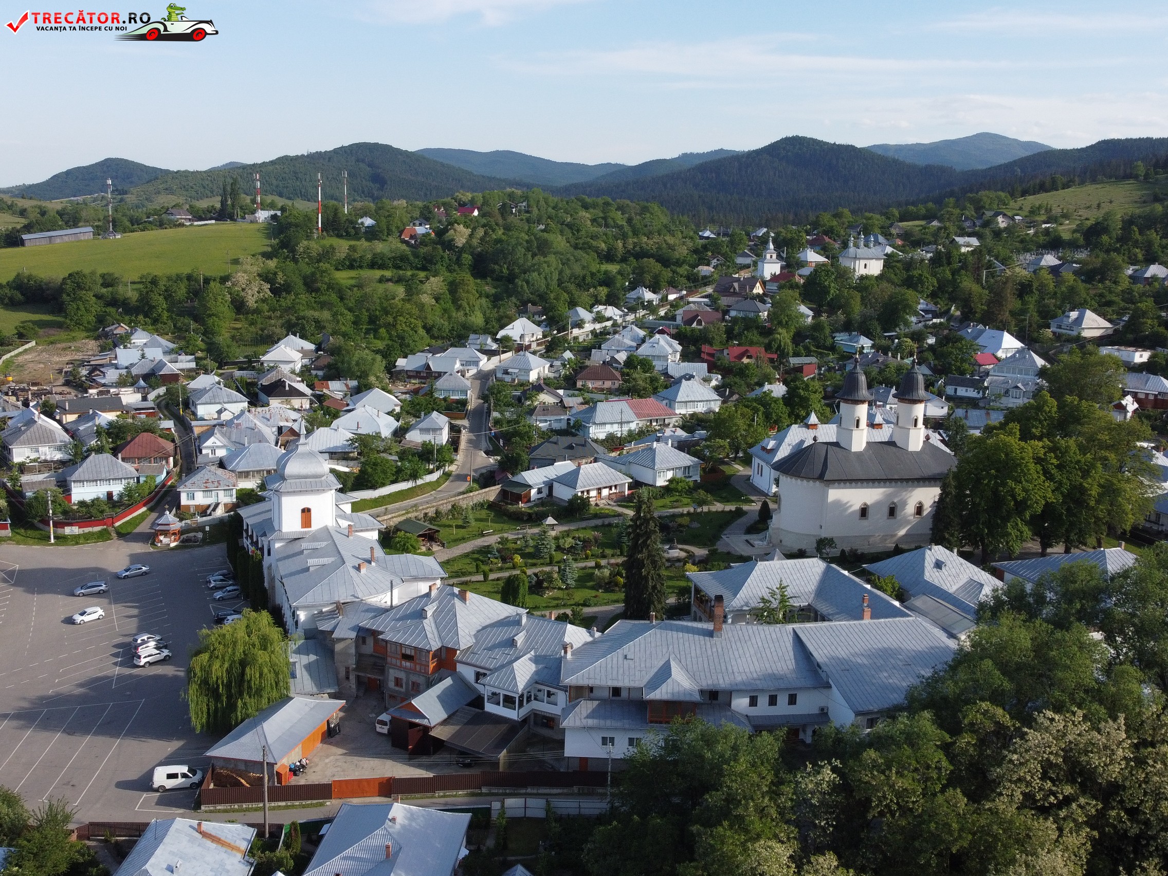 Ziduri masive din piatră închid o incintă unde se află Biserica „Adormirea Maicii Domnului” (biserica principală), stăreția și clădirile administrative (aflate în clădirile de pe latura nordică a incintei) și Muzeul mănăstirii, unde fusese anterior Atelierul „Regina Maria” (aflat în clădirea de pe latura sudică). Incinta monahală este înconjurată de satul mănăstiresc, alcătuit din casele tradiționale țărănești unde locuiesc maicile și care se înșiră pe ulițe înguste.