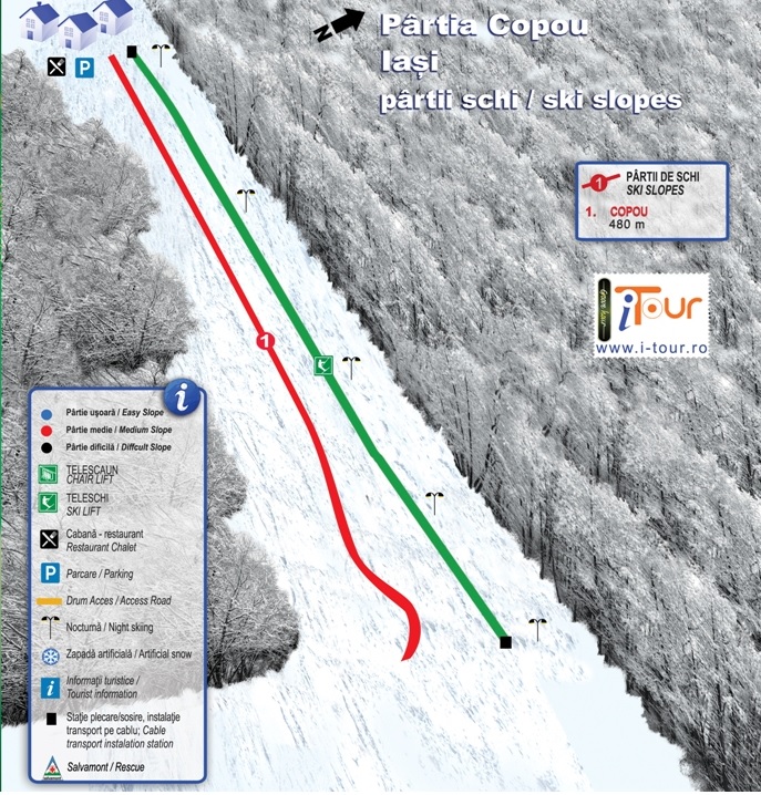 Pârtia de schi din Iaşi (Sicau-Sararie) este situată în Copou, zona 1 Mai, cu intrare de pe Sararie. Pârtia are o lungime de 390 m, cu lăţime de 20-30 m, este de dificultate medie şi dispune şi de o instalaţie teleschi şi de nocturnă.