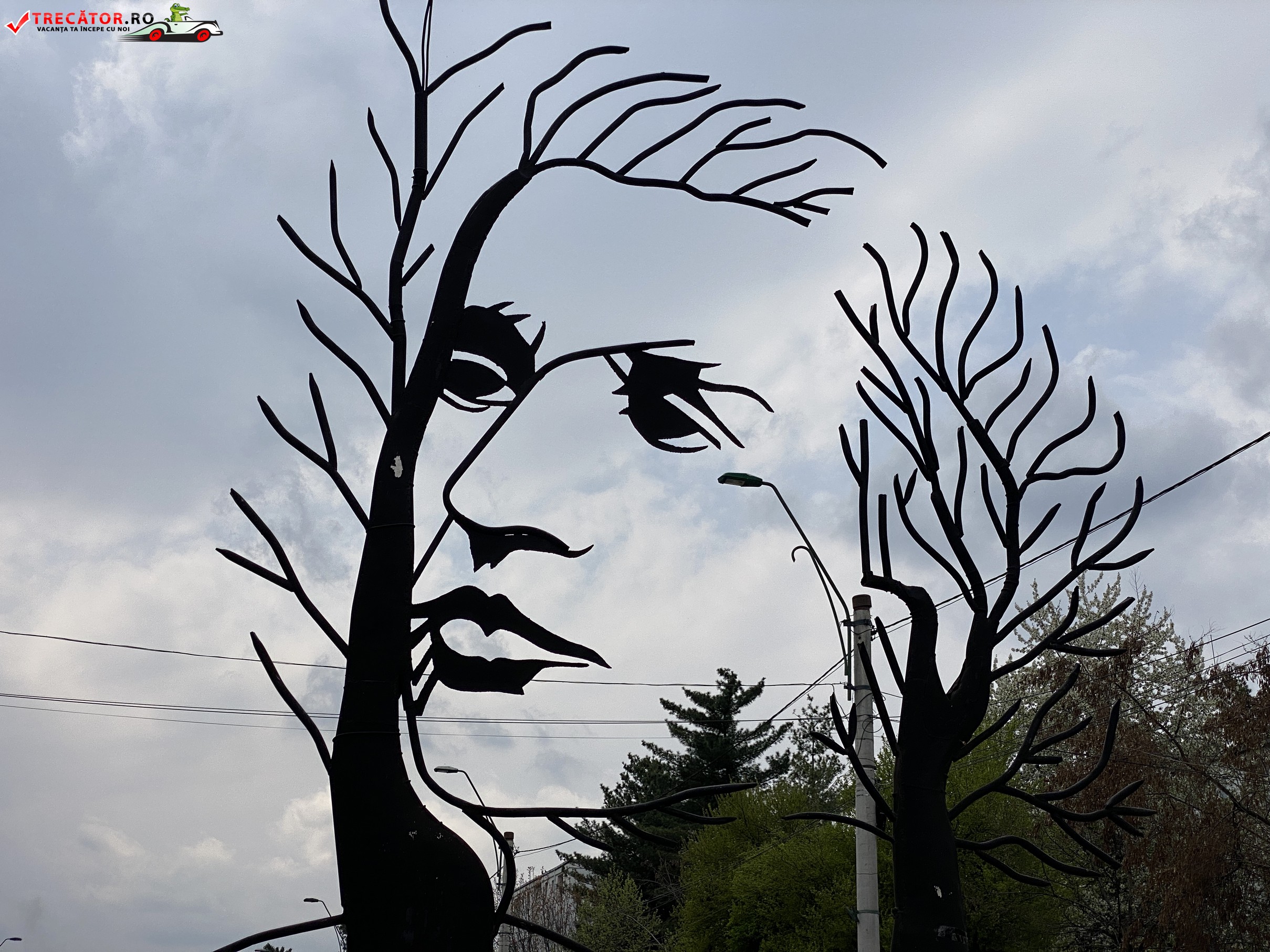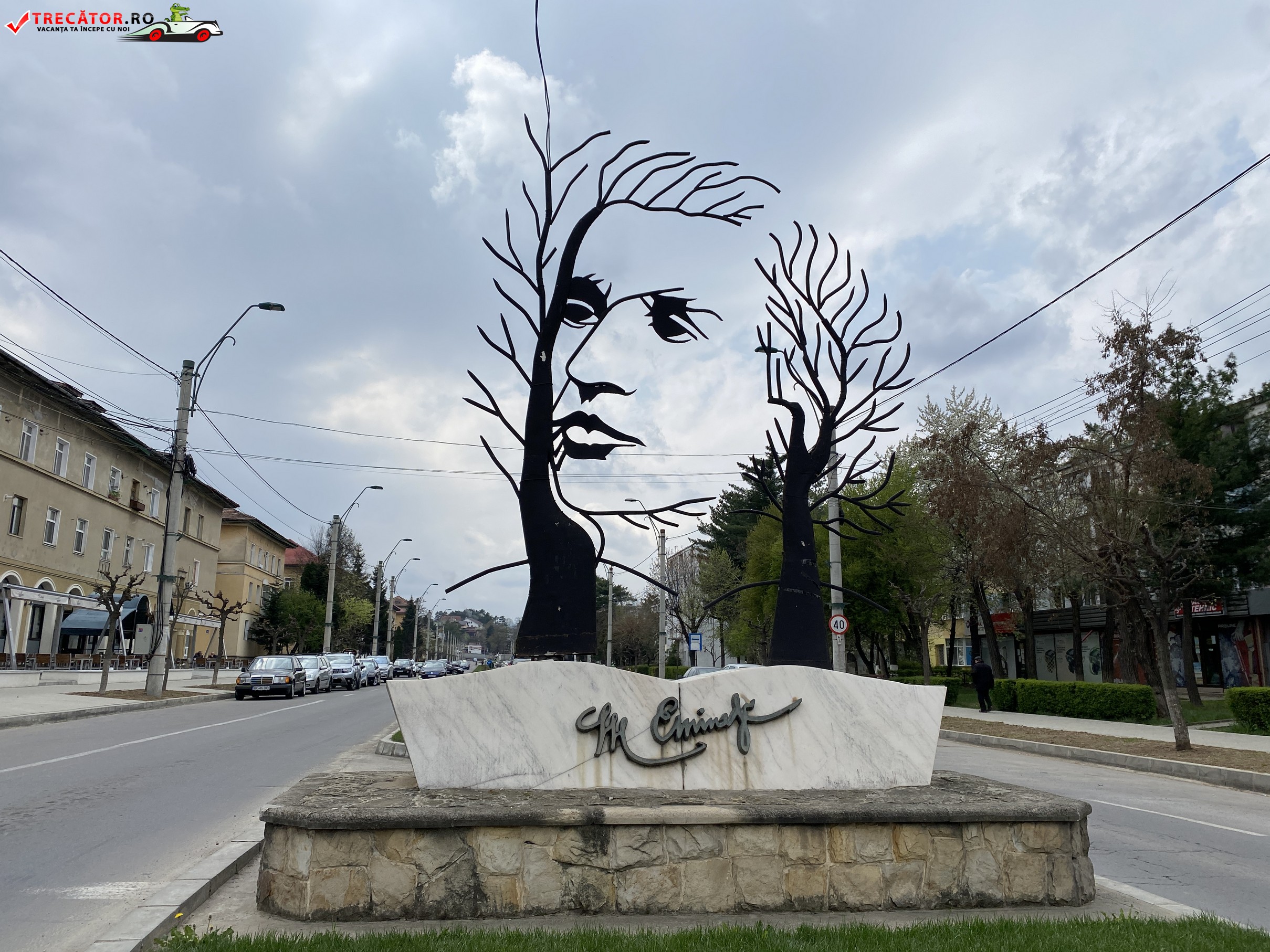 Monumentul lui Mihai Eminescu, pe care Eremia Costel Grigorescu l-a creat, este de o frumusețe aparte. Așa cum bine știți, chipul lui Mihai Eminescu este prezentat prin ramurile a doi copaci cu trunchiurile adâncite într-un soclu de marmură.