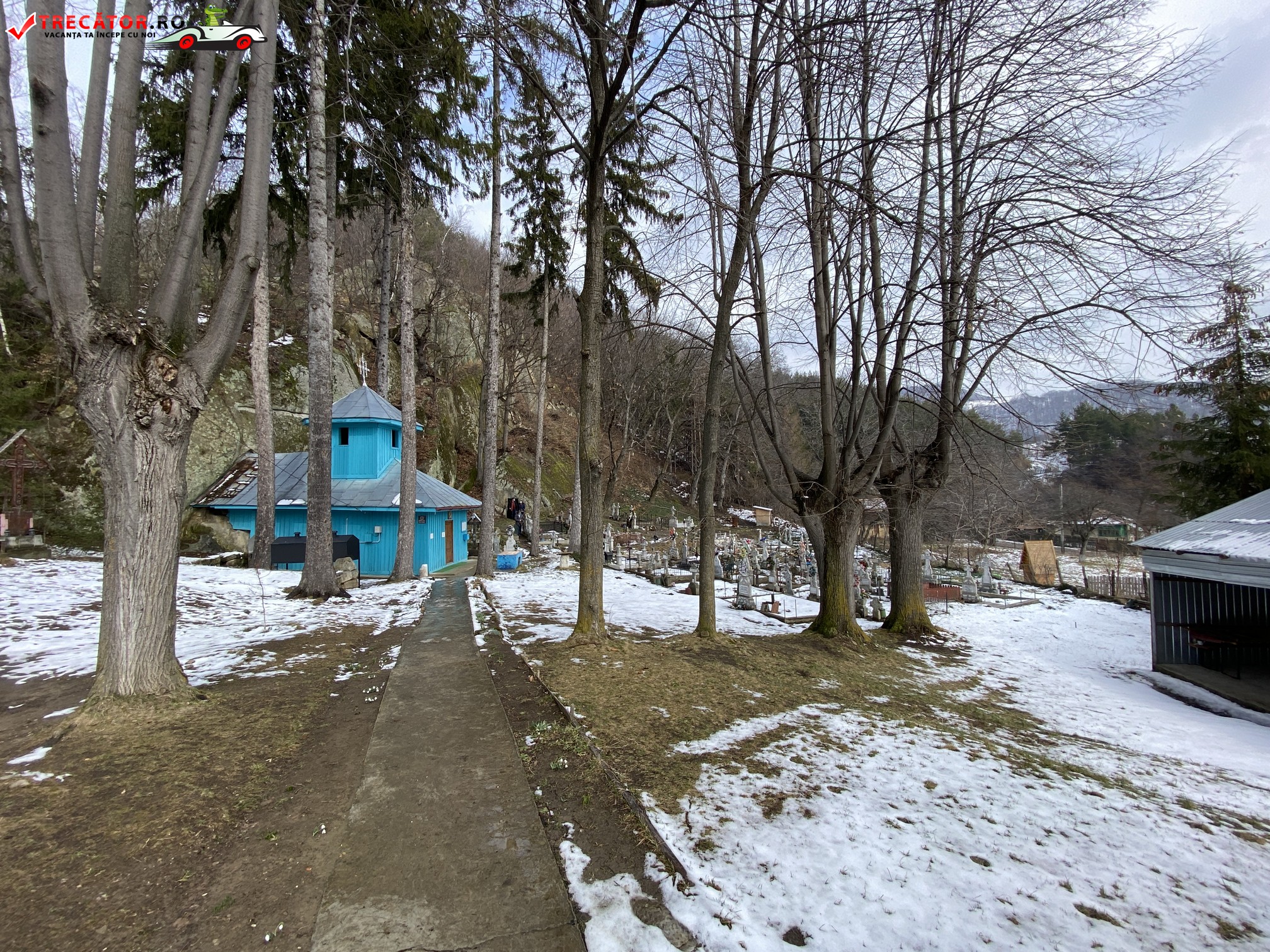 Biserica sapata in piatra, are forma de nava, cu tavan boltit. Absida altarului este mica, prevazuta cu Sfanta Masa, Proscomidiar, firide pentru vase cultice, precum si cu fereastra. Si naosul are fereastra, pentru iluminarea stranei cantaretului si pentru aerisire. Dimensiunile bisericii din piatra sunt: 8,80 m lungime, 4 m latime si 2,80 inaltime.