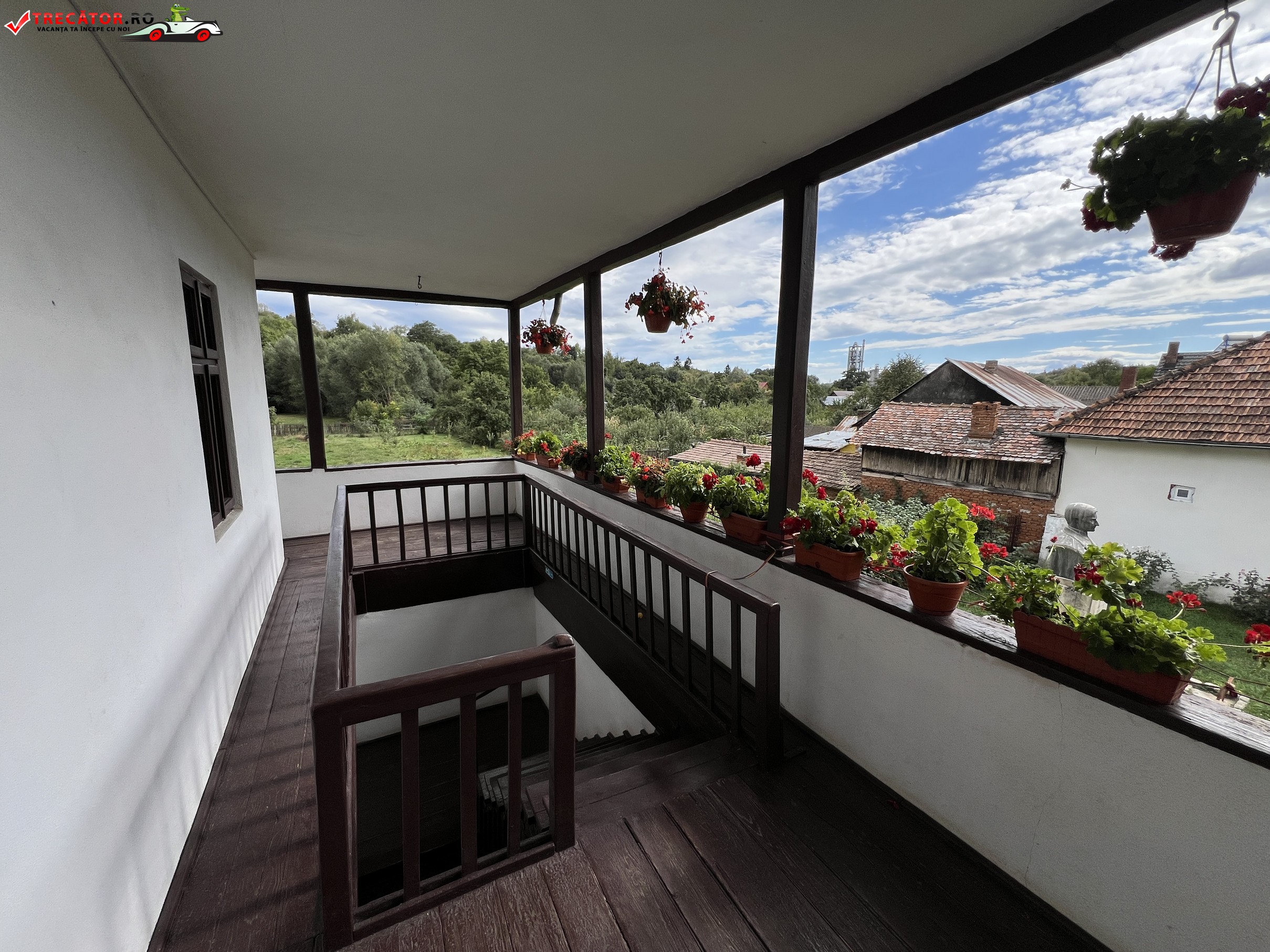O scară interioară de lemn, element original în arhitectura țărănească, ne conduce la etaj unde, în două încăperi dispuse simetric față de un antreu, a fost recreată atmosfera în care a trăit și a scris George Topârceanu.