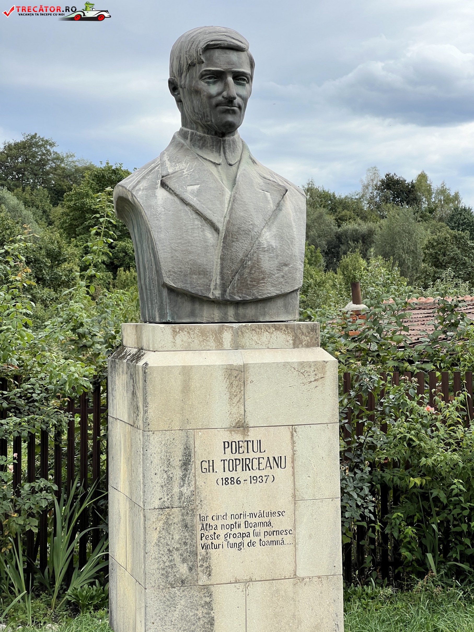 La intrarea în micul parc, printre pomi, te întâmpină statuia de bronz a poetului, ridicată în 1973 de ofițerul în rezervă Marius Buturoiu, pe soclul căreia sunt așternute ultimele versuri din „Balada morții”.