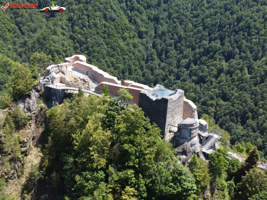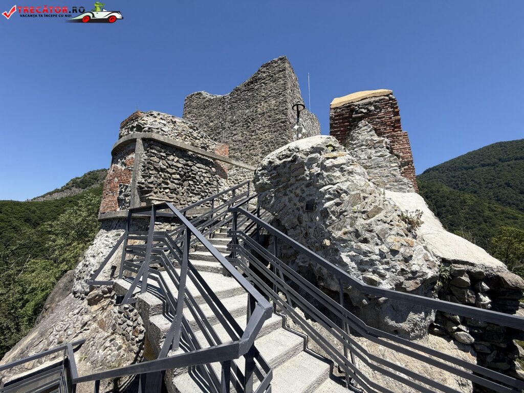 Accesul la cetate presupune o mică aventură: urcarea celor 1.480 de trepte, prin pădure de fag, până la altitudinea de aproximativ 850 m. Chiar dacă durează circa o oră, efortul e răsplătit cu o privelişte copleșitoare asupra Văii Argeșului, a lacului Vidraru și a Munților Făgăraș. Două puncte de odihnă amenajate pe traseu îi primesc pe drumeţi pentru a le permite să admire, pe rând, panorama și aerul curat de munte.