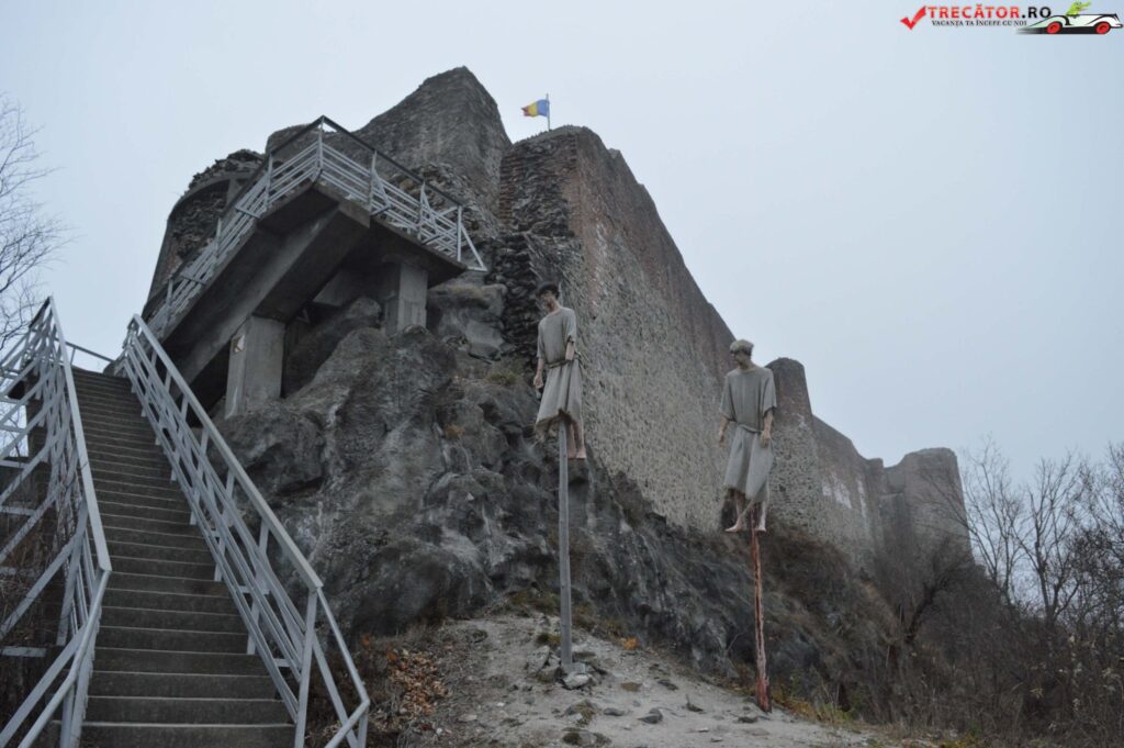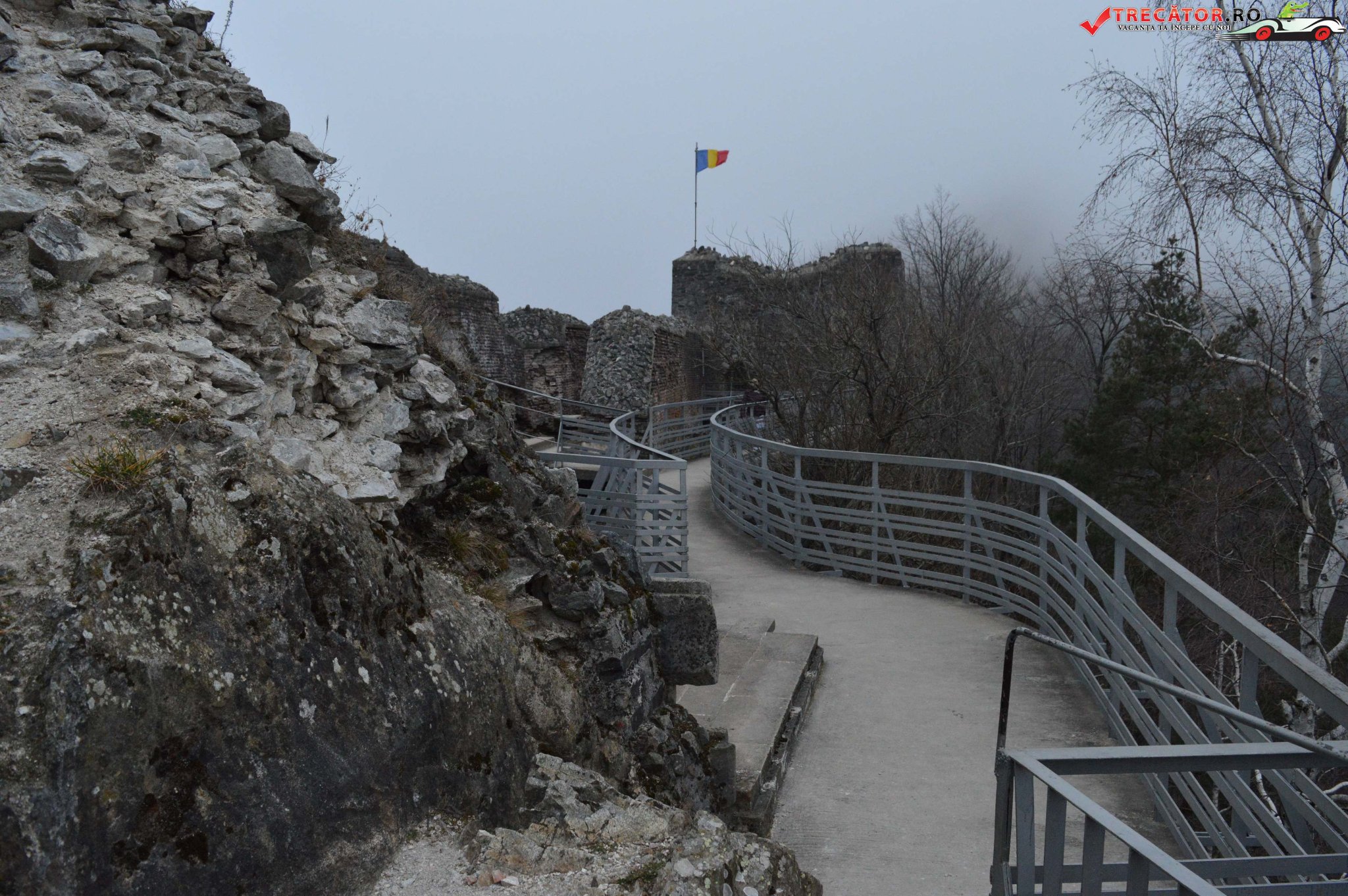 Accesul la cetate presupune o mică aventură: urcarea celor 1.480 de trepte, prin pădure de fag, până la altitudinea de aproximativ 850 m. Chiar dacă durează circa o oră, efortul e răsplătit cu o privelişte copleșitoare asupra Văii Argeșului, a lacului Vidraru și a Munților Făgăraș. Două puncte de odihnă amenajate pe traseu îi primesc pe drumeţi pentru a le permite să admire, pe rând, panorama și aerul curat de munte.