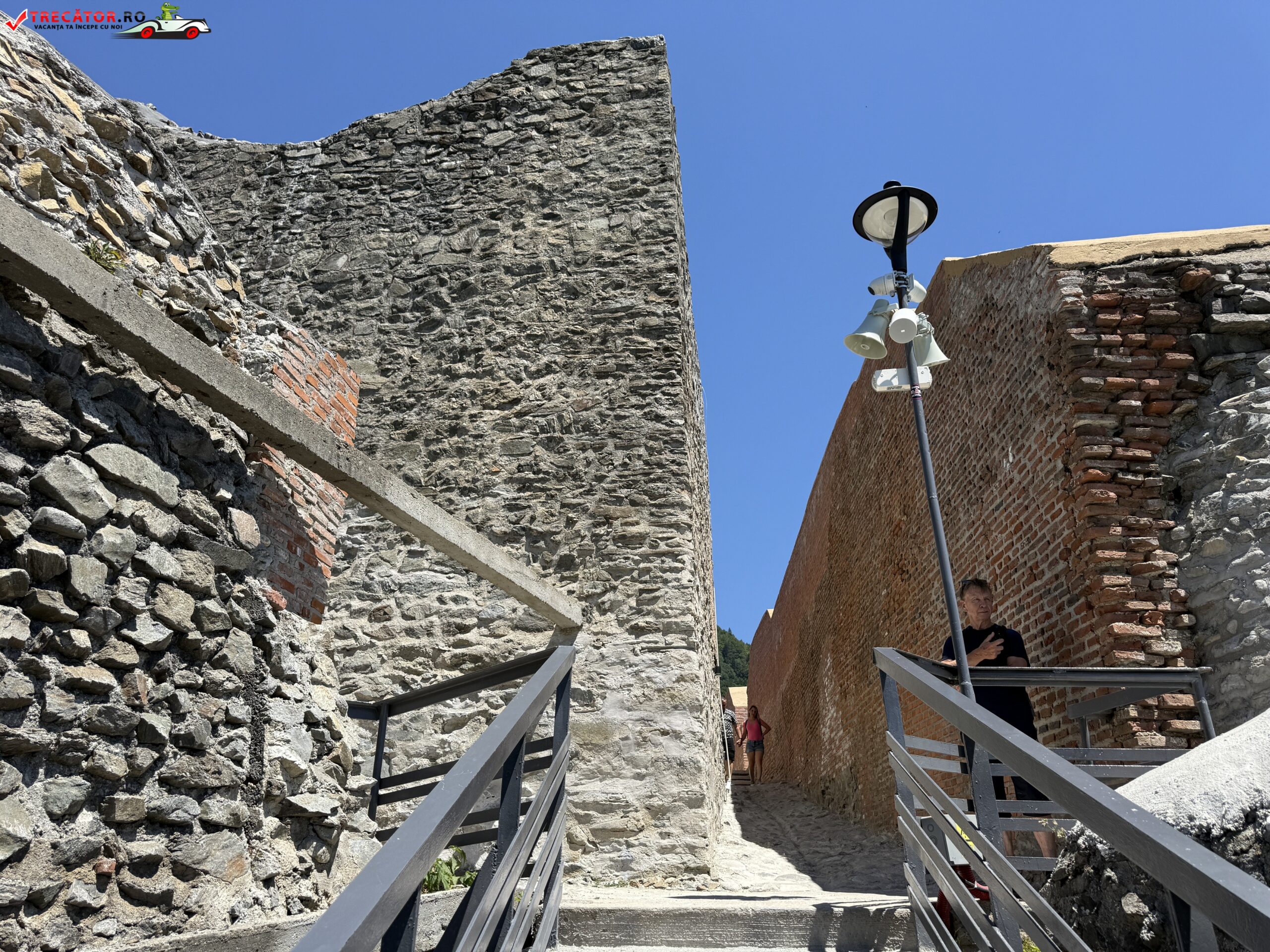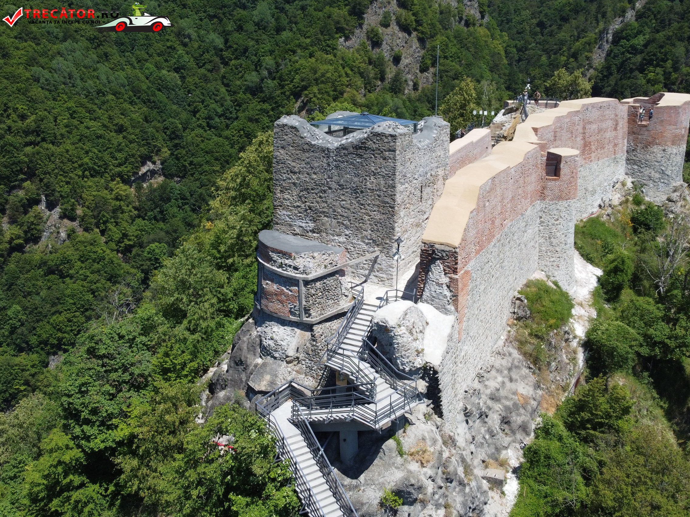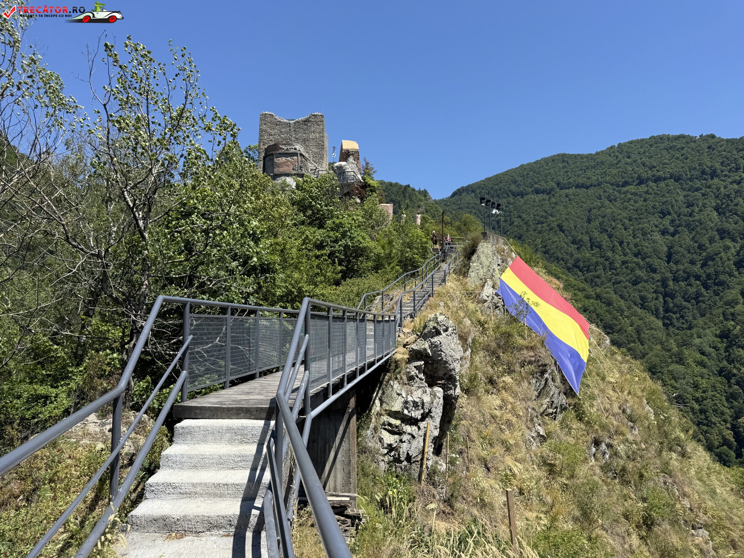 Accesul la cetate presupune o mică aventură: urcarea celor 1.480 de trepte, prin pădure de fag, până la altitudinea de aproximativ 850 m. Chiar dacă durează circa o oră, efortul e răsplătit cu o privelişte copleșitoare asupra Văii Argeșului, a lacului Vidraru și a Munților Făgăraș. Două puncte de odihnă amenajate pe traseu îi primesc pe drumeţi pentru a le permite să admire, pe rând, panorama și aerul curat de munte.