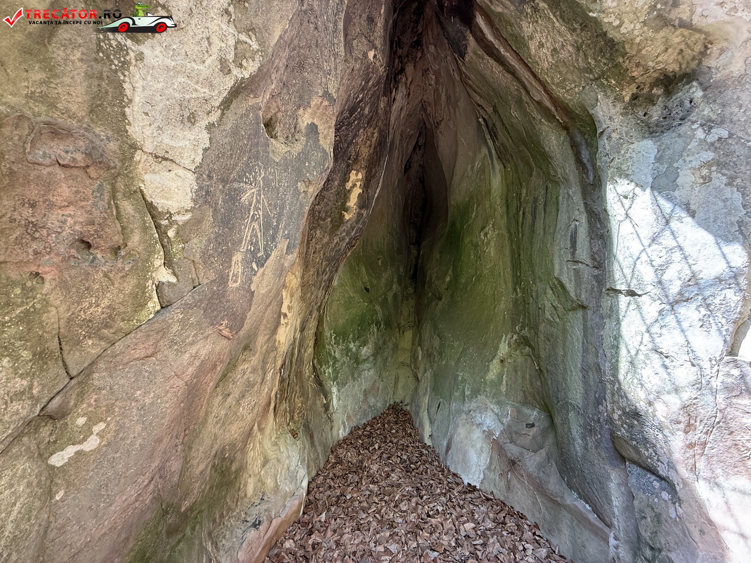 Pe pereții grotei au fost identificate peste 200 de simboluri, realizate prin tehnica inciziei și a zgârierii. Acestea includ vârfuri de lănci, de săgeți sau sulițe, cu sau fără coadă de lemn, pumnale, dar și alte semne specifice artei rupestre preistorice. Printre cele mai interesante sunt inciziile în formă de pumnale de tip Akinakes, pumnale specifice culturii persane, care au fost împrumutate mai întâi de sciți, apoi de geto-daci.
