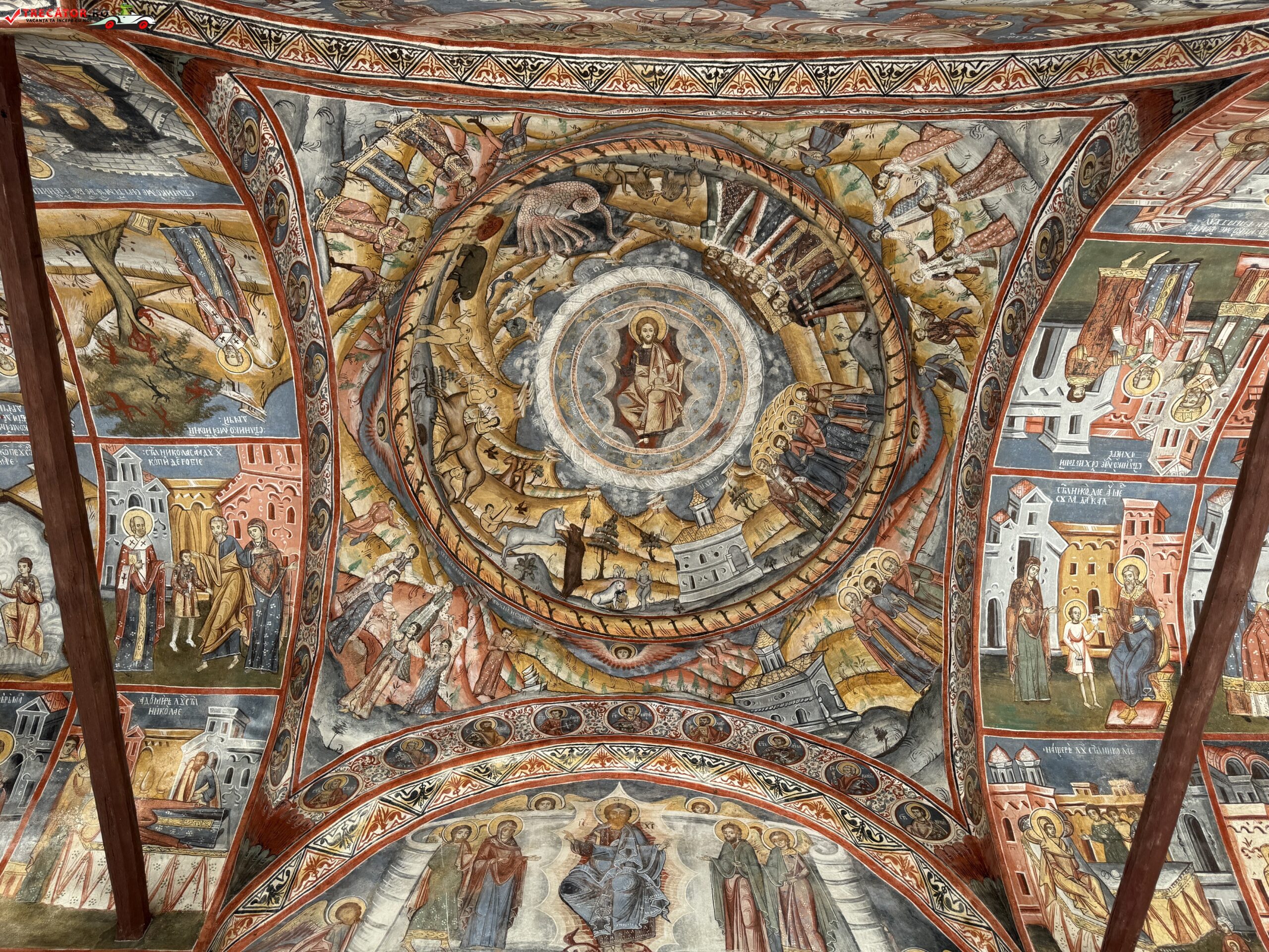 Biserica a fost zugrăvită în frescă de catre renumitul zugrav Pârvu Mutu din Campulung. Deasupra ușii de la intrarea în biserică se vede și astăzi tabloul votiv în care sunt zugrăviți ctitorii bisericii, Tudoran și Alexandra, împreună cu unsprezece copii din familia boierească .