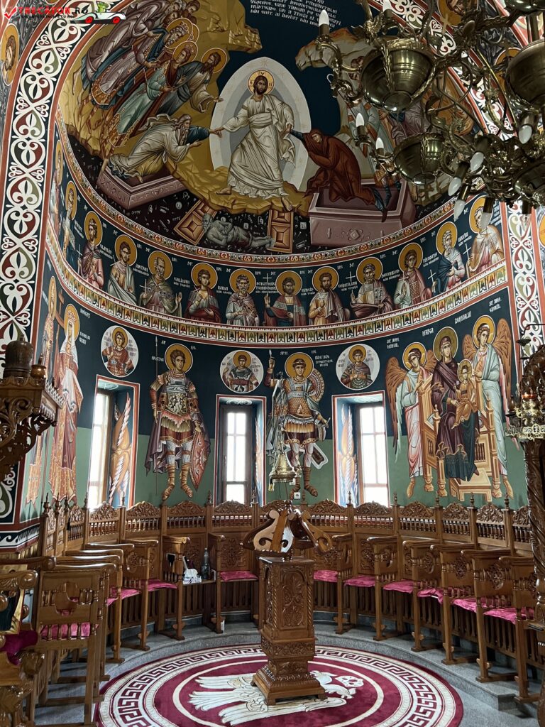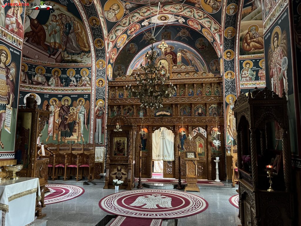 In interiorul curtii se gasesc corp de chilii, trapeza si biserica. Manastirea este inconjurata de un zid inalt, avand la intrare o frumoasa clopotnita.