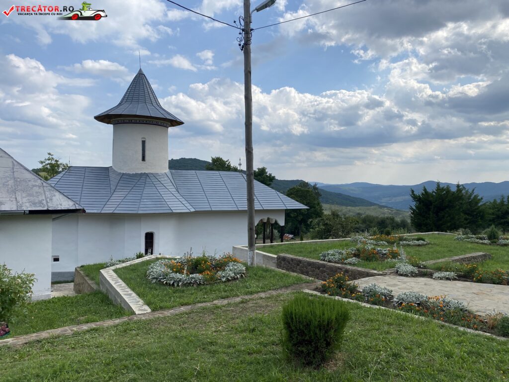Biserica mare a manastirii, avand hramurile Sfintii Arhangheli Mihail si Gavriil, Buna Vestire, Izvorul Tamaduirii si Adormirea Maicii Domnului, este zidita din piatra, ea pastrandu-si pana astazi forma originala. De mici dimensiuni, biserica este zidita in forma de cruce, avand o singura turla cilindrica si un pridvor deschis, sprijinit pe stalpi de lemn.
