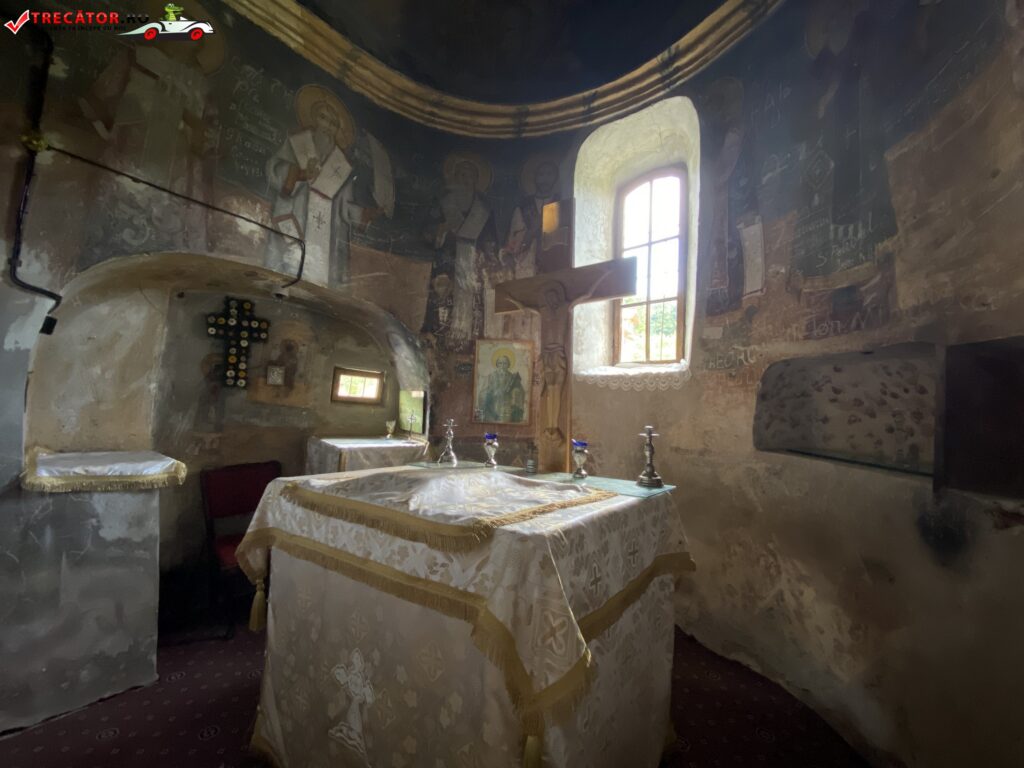 Pictura in fresca a bisericii, lucrata in secolul al XIX-lea, nu se afla intr-o buna stare de pastrare, datorita perioadei in care biserica a fost parasita. Pictura originala se vede numai pe alocuri, mai ales in partea de jos in in pridvor. Turla de forma cilindrica are pereti dubli, in interiorul acesteia aflandu-se o tainita mica, in care familia domnitorului Mircea Ciobanu se putea ascunde, in caz de nevoie.