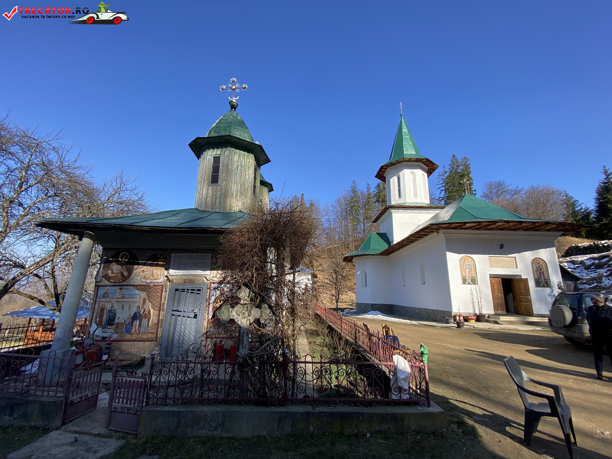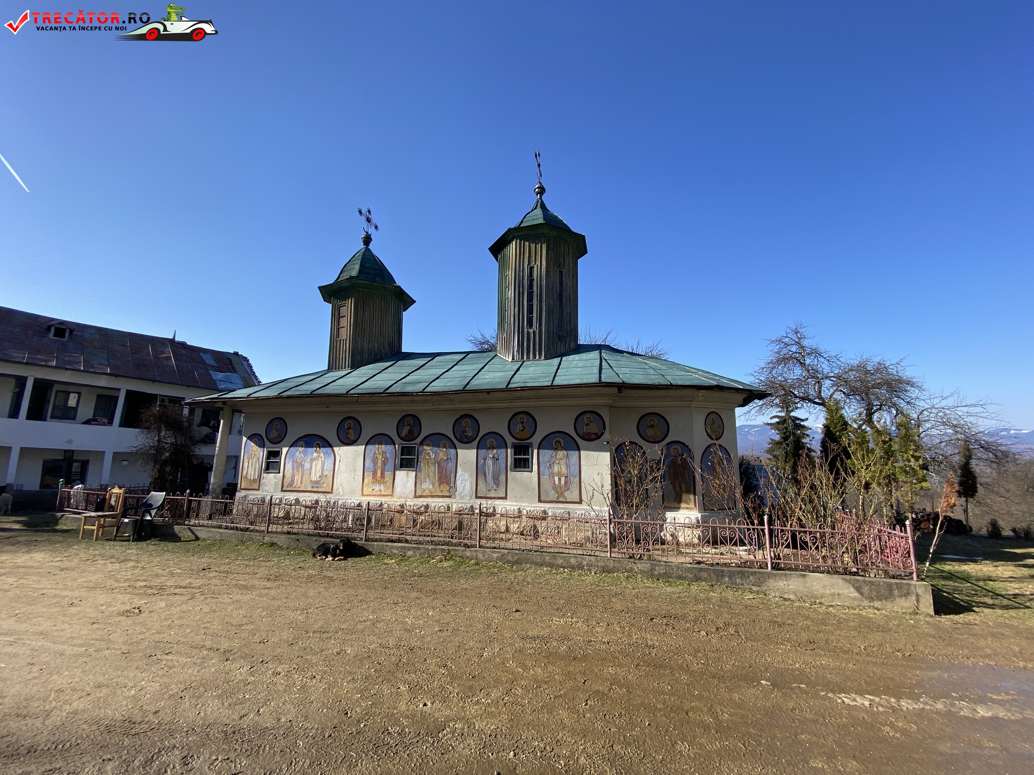 Mănăstirea are două biserici: una mică, din lemn, cu pictură neobizantină la exterior şi autentic românească la interior, cu hramul „Intrarea Maicii Domnului în Biserică” şi cea nouă, mai mare, unde s-a pictat momentan numai altarul, cu hramul „Sfinţii Apostoli Petru şi Pavel”.