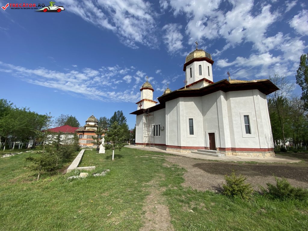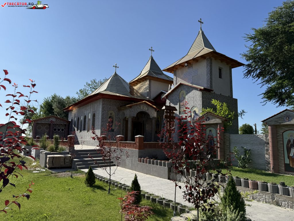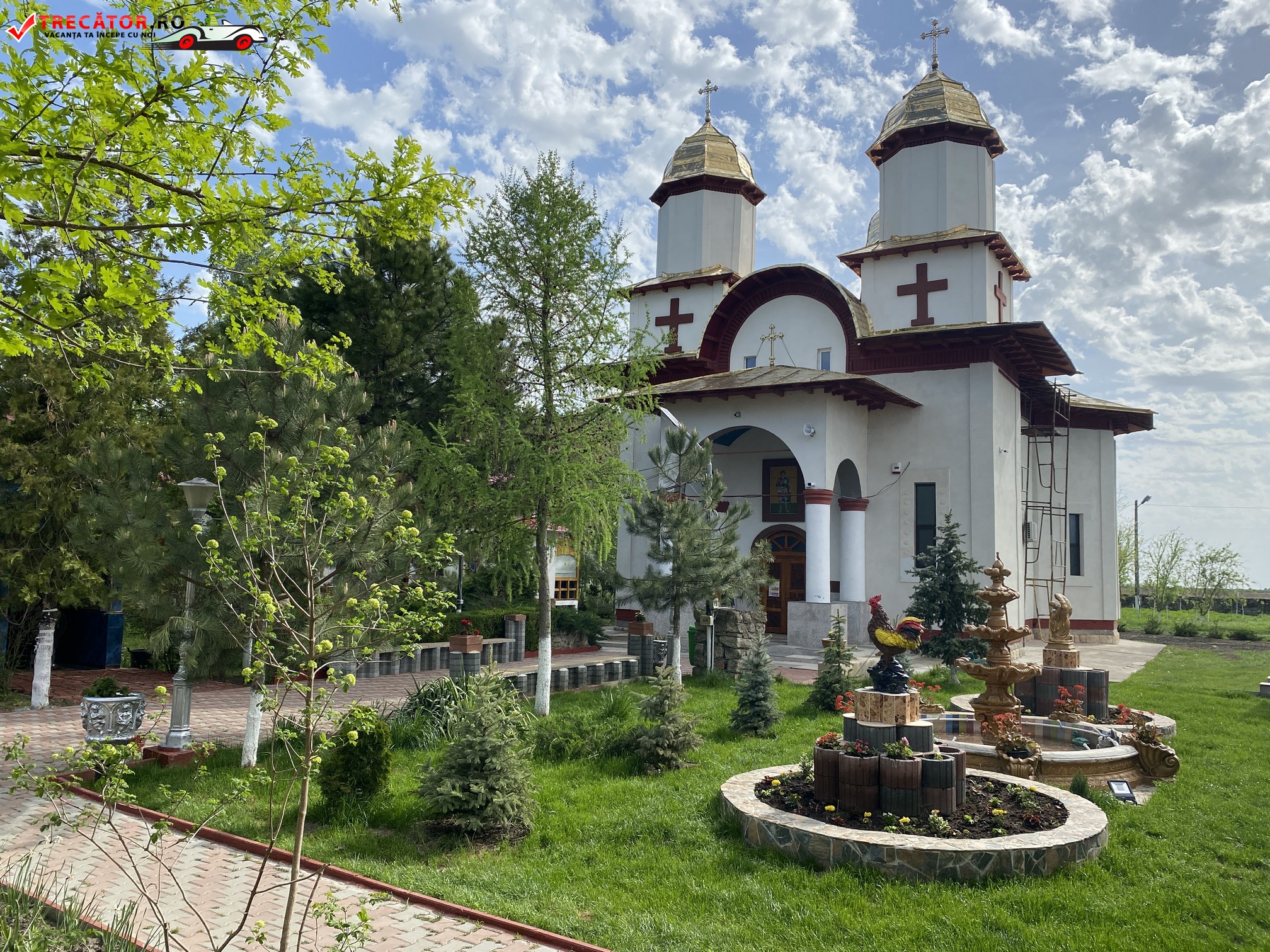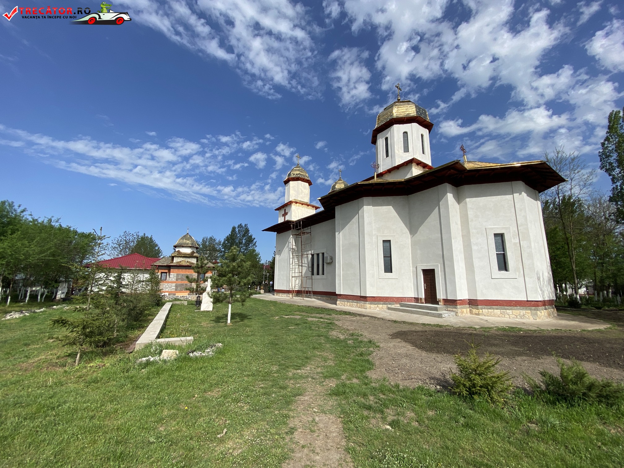 Corpul bisericii şi turlele sunt împodobite cu un brâu roşu de cărămidă presată. Aşezământul cu Hramul’’Sfântul Mare Mucenic Gheorghe’’ a fost sfinţit în ziua de 25 martie 1913 de arhiereul Valerian Râmniceanul. Primul Preot al comunităţii a fost Preotul Enache Petrescu, prin strădania căruia la 1 septembrie 1914 capătă statutul de biserică parohială, având administraţie de sine stătătoare.