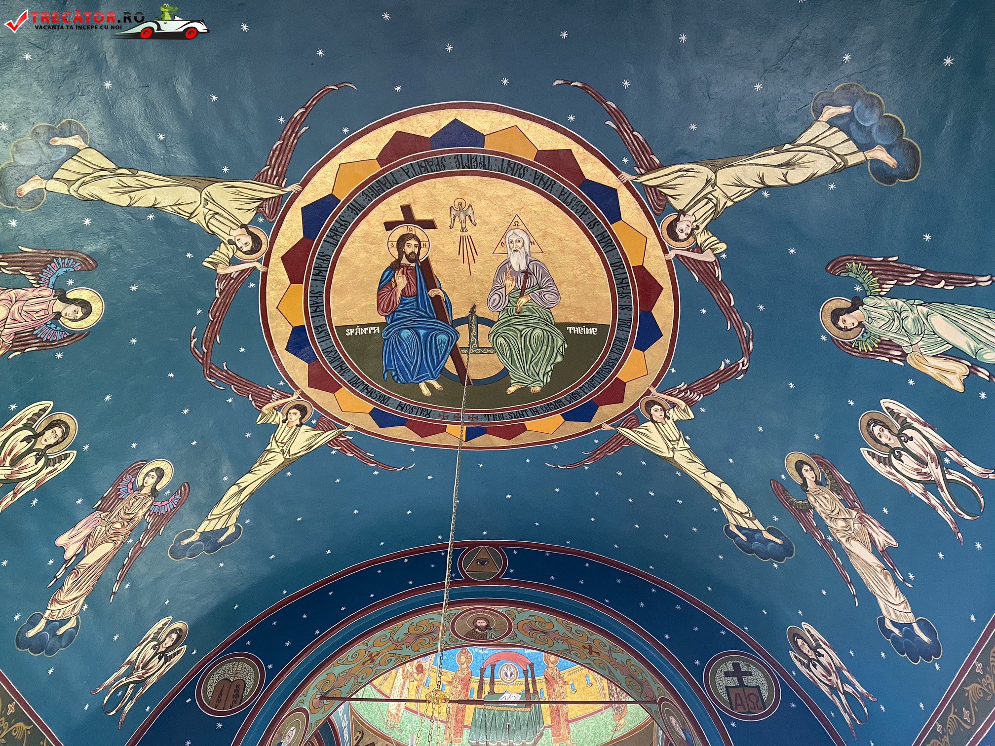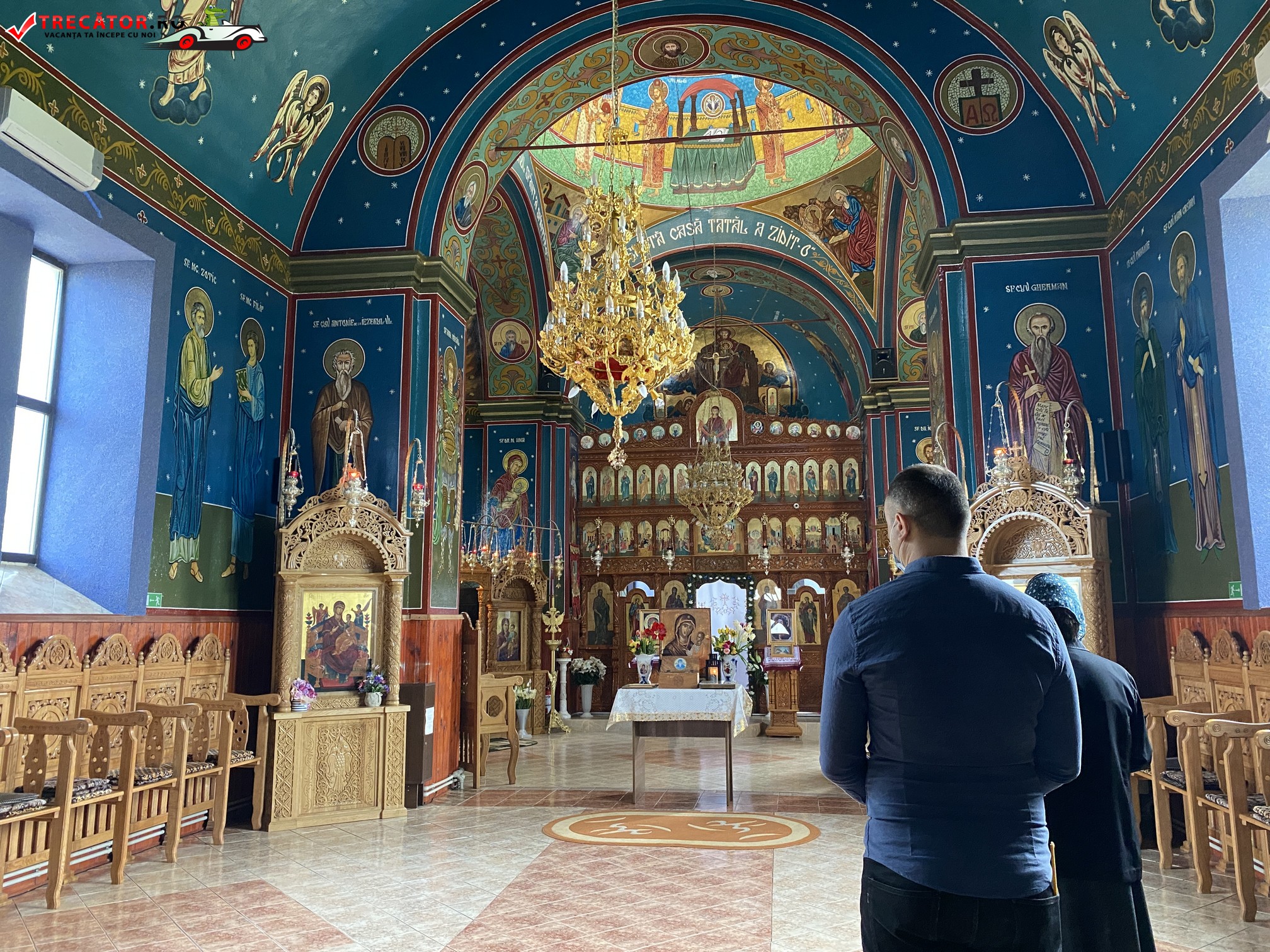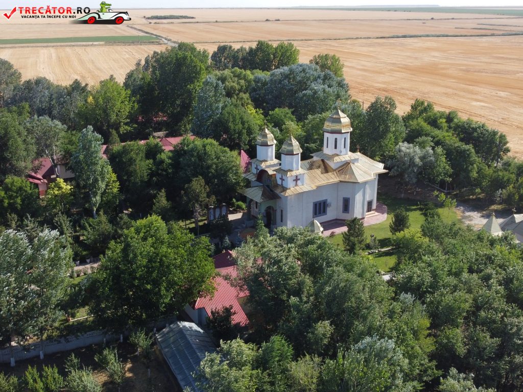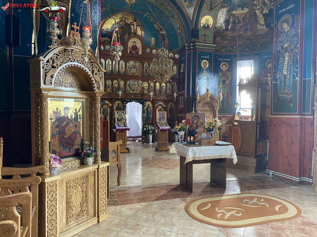 Corpul bisericii şi turlele sunt împodobite cu un brâu roşu de cărămidă presată. Aşezământul cu Hramul’’Sfântul Mare Mucenic Gheorghe’’ a fost sfinţit în ziua de 25 martie 1913 de arhiereul Valerian Râmniceanul. Primul Preot al comunităţii a fost Preotul Enache Petrescu, prin strădania căruia la 1 septembrie 1914 capătă statutul de biserică parohială, având administraţie de sine stătătoare.