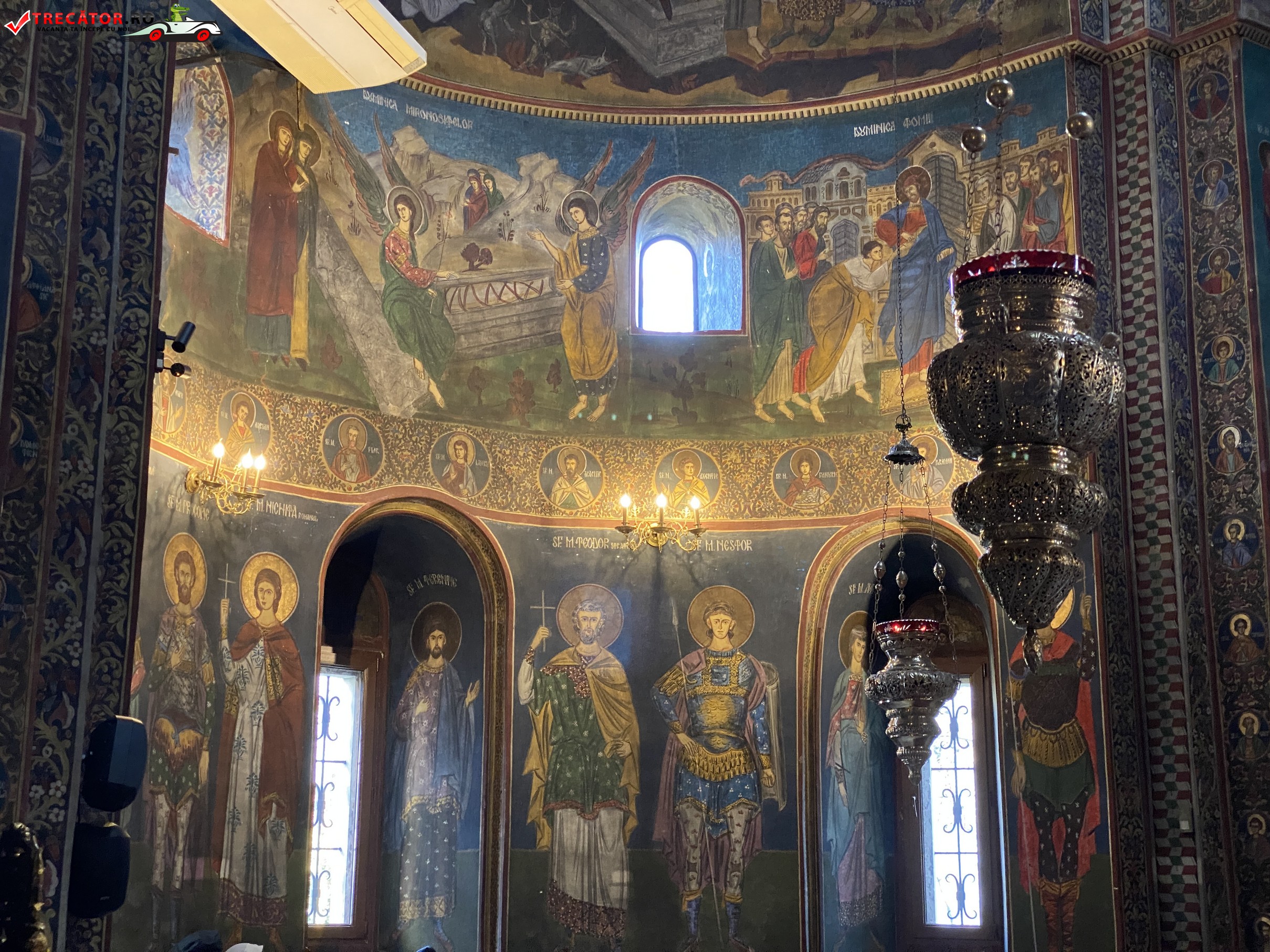 Tot atunci i-a fost adăugat şi pridvorul, care se păstrează şi astăzi. În interior sunt demne de văzut frumosul iconostas de expresie barocă şi pietrele de mormânt din pronaos: una dintre cele mai vechi este cea a lui Vlad Voievod, fiul lui Mihnea Turcitul, mort la sfârşitul secolului al XVI-lea.