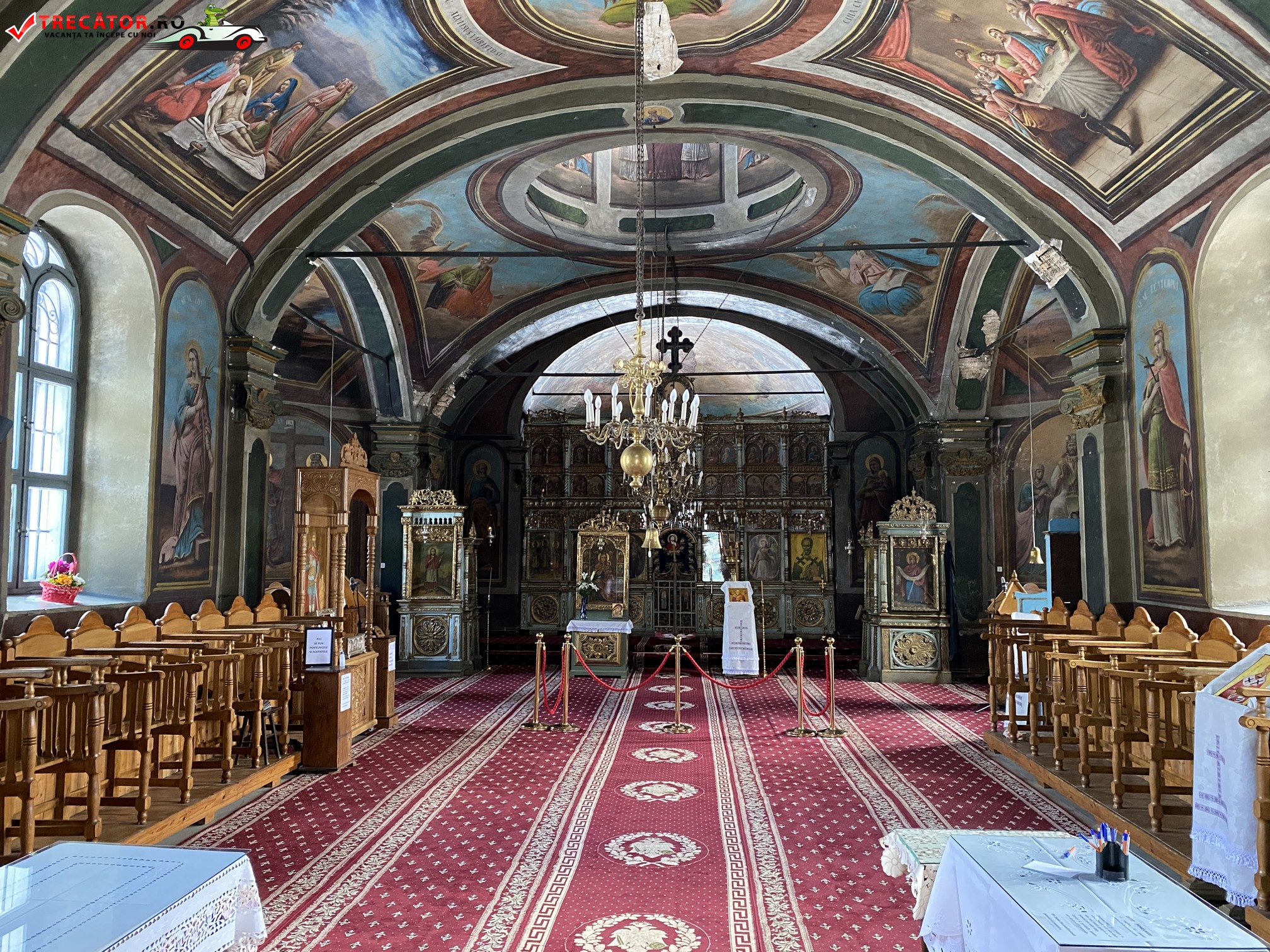 Ferestrele sunt mari, prevazute cu grilaj metalic. Sunt doua ferestre in naos (cate una pe fiecare parte) si 4 in pronaos (cate doua pe fiecare parte). Tampla din lemn este sculptata cu motive florale. Are unele icoane imbracate in argint aurit. Pardoseala este din scandura, iar acoperisul din tabla.