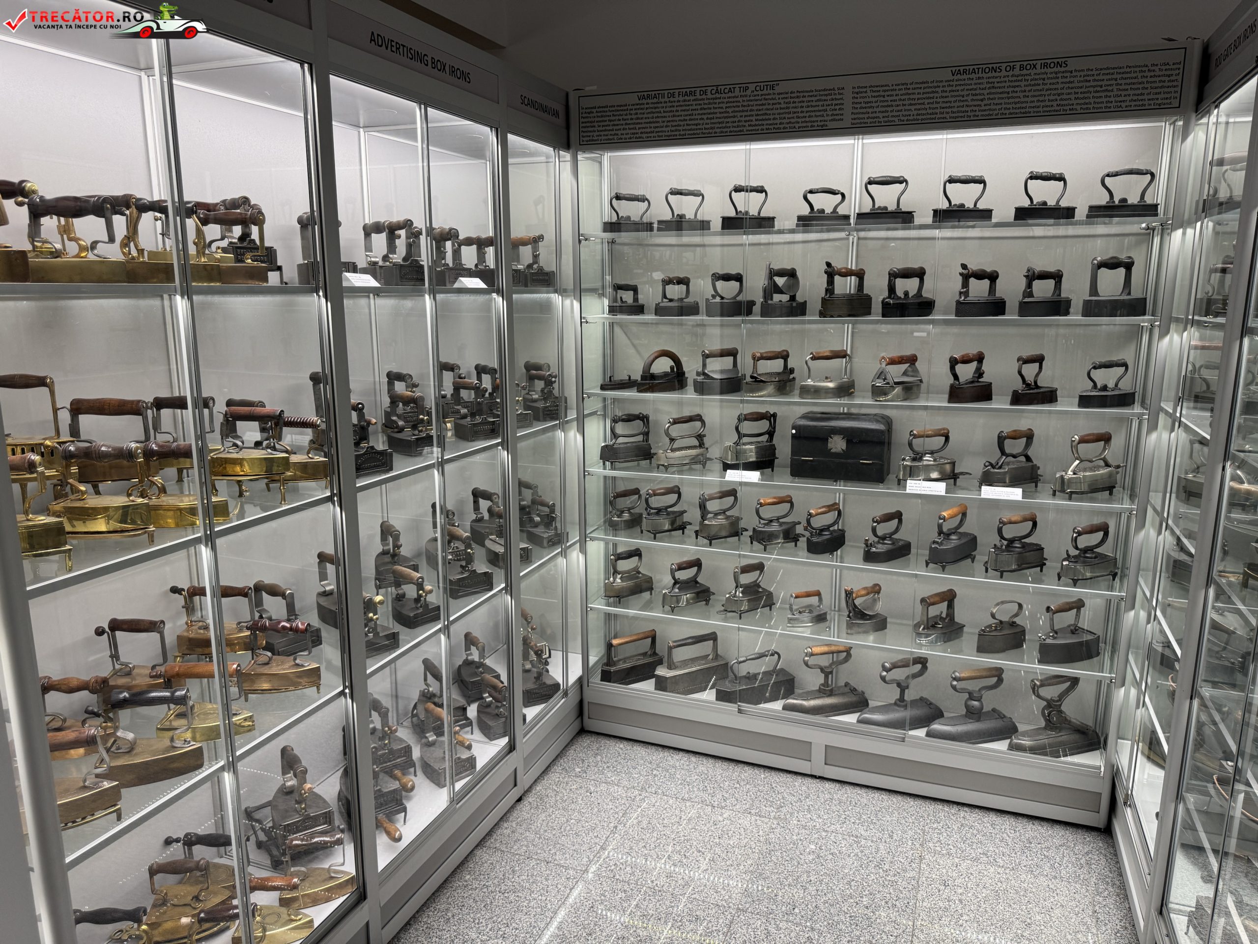 La fel de impresionantă este și colecția de fiare de călcat, prezentată drept cea mai mare din lume. Recordul a fost stabilit în august 2016 cu 30.071 de exponate, iar colecția a trecut ulterior de 35.000 de piese. Greu de imaginat la prima vedere, un astfel de ansamblu reușește să transforme un obiect casnic obișnuit într-o lecție amplă despre tehnologie, materiale și viață domestică. De la modele vechi, grele și rudimentare, până la variante tot mai sofisticate, evoluția fierului de călcat reflectă perfect felul în care confortul a devenit, treptat, o prioritate a modernității.
