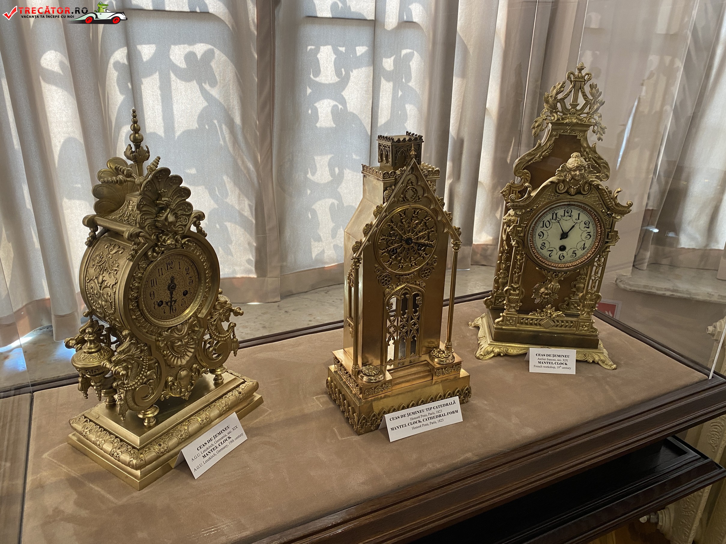 Bine reprezentate în colecţia Muzeului Ceasului sunt ceasurile de şemineu, montate în carcase din bronz aurit, cu postamente surmontate de personaje mitologice sau scene idilice.