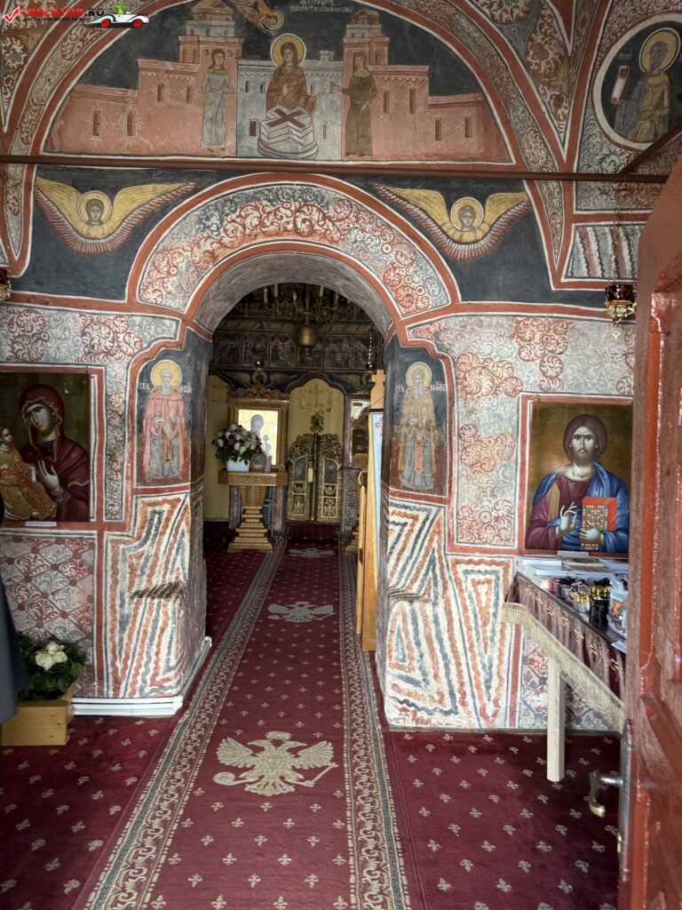 În interiorul lăcaşului se află, pictate şi alte inscripţii care fac referire la ctitori şi la zugravi. Astfel, în pronaos, pe zidul de vest, inscripţiile de la 1785 îi pomenesc pe ctitorii Pahomie monah, Teodosie eromonah şi Grigori eromonah. La fel, alte inscripţii mai recente, datate 1810-1830 îi consemnează, tot în pronaos, pe Preda Bujoreanu postelnic, deşi, în realitate, el fusese vornic, pe copiii săi Costandin şi Ilinca şi pe Partenie, zugravul şi monahul de la mănăstirea Bistriţa.